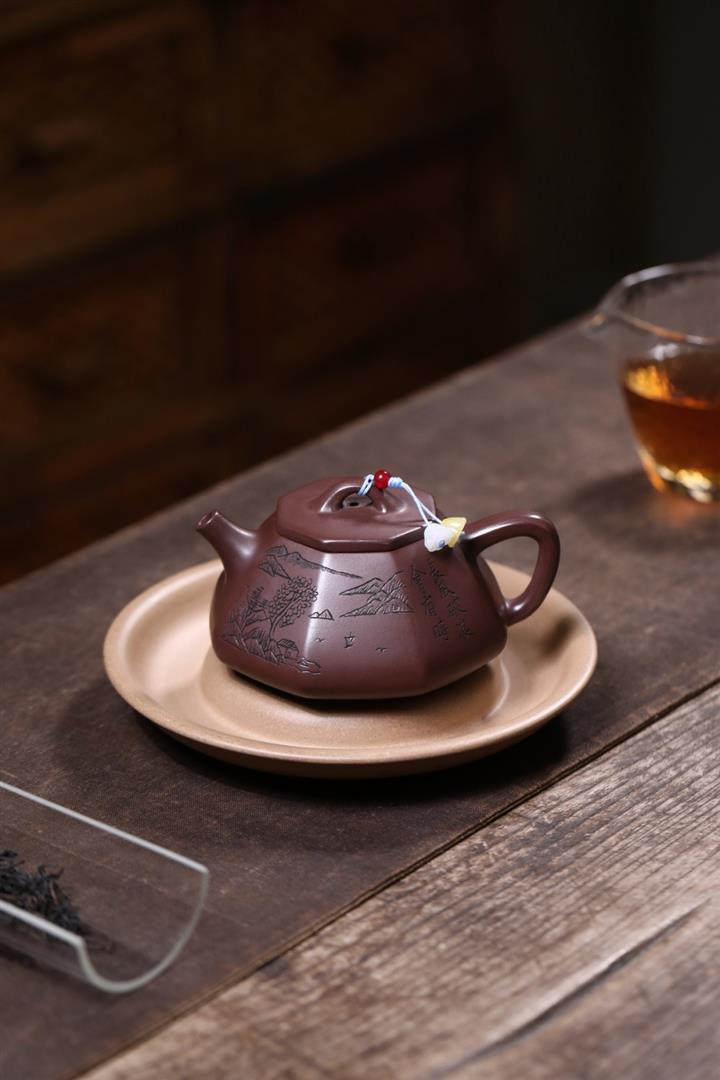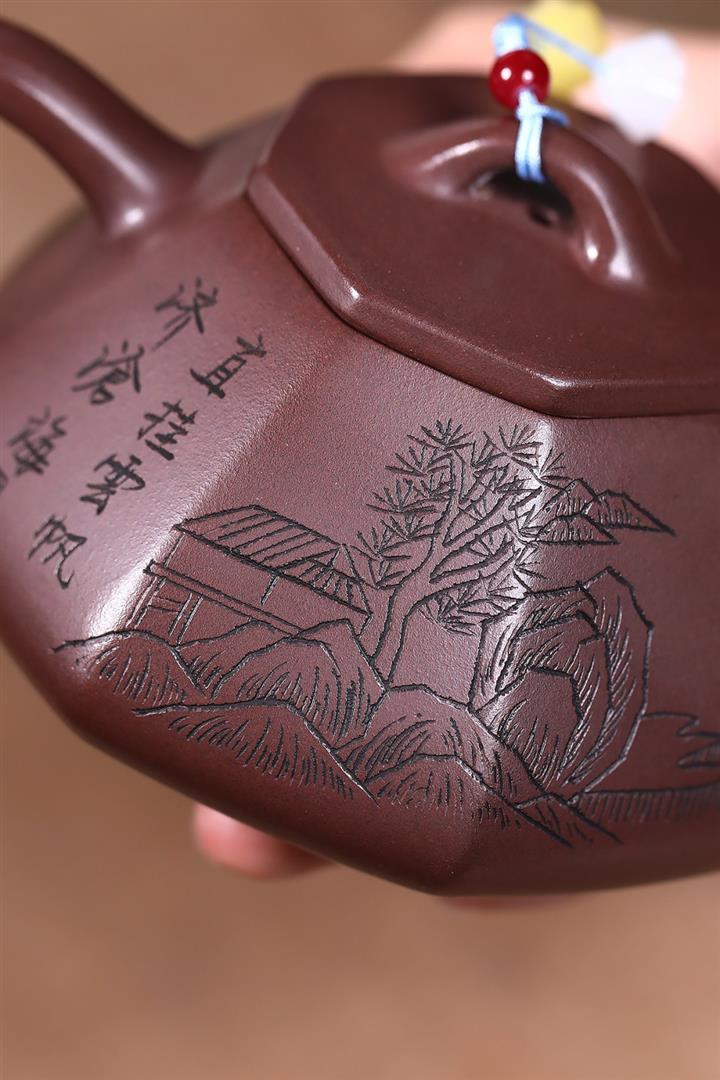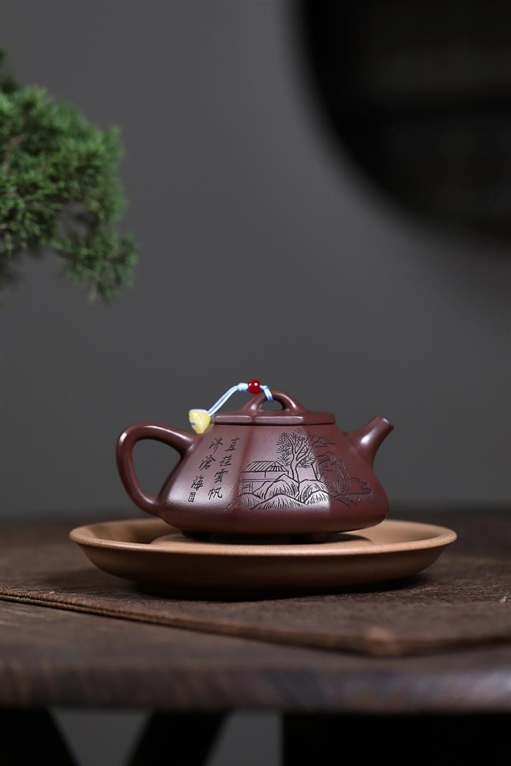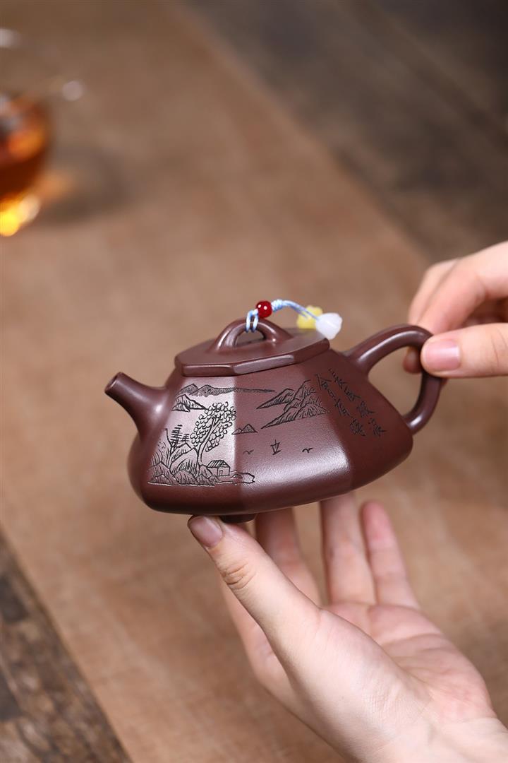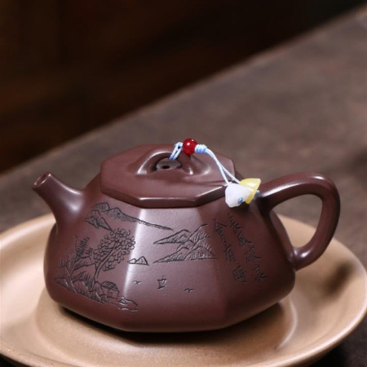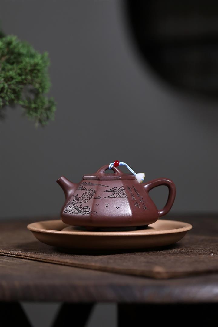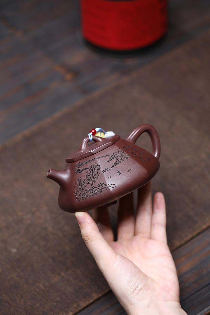 原礦紫泥八方山水石瓢茶壺POT7834
