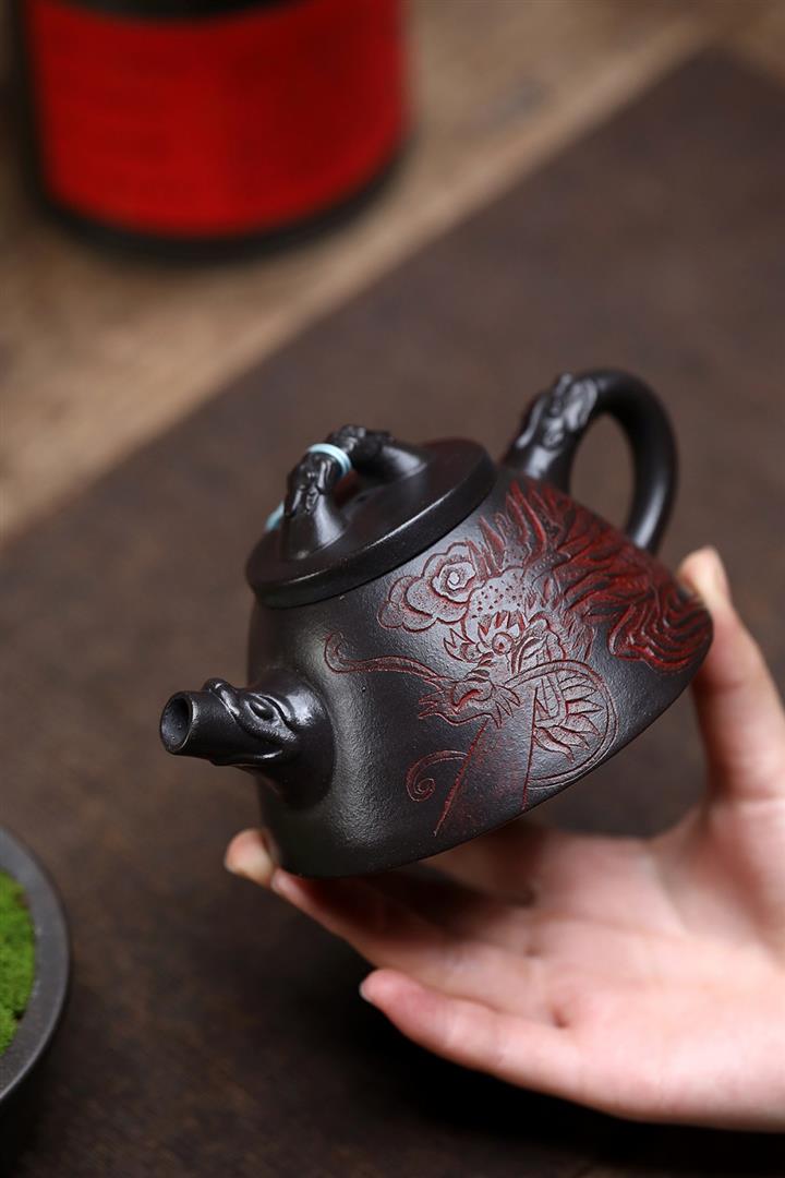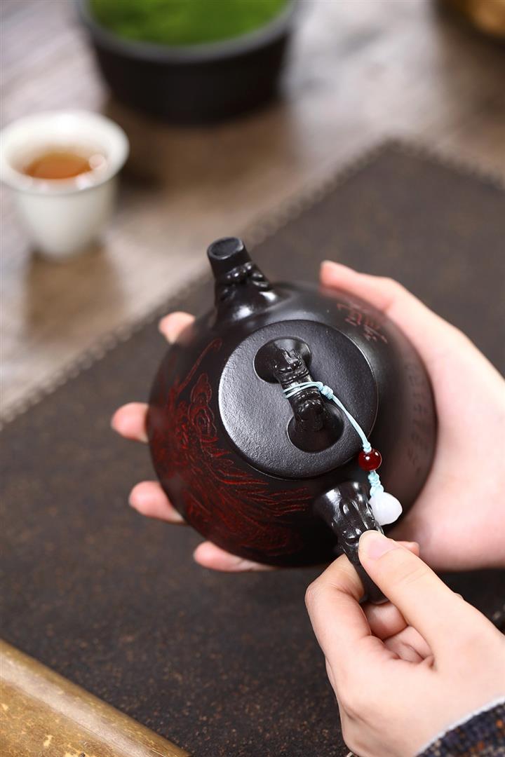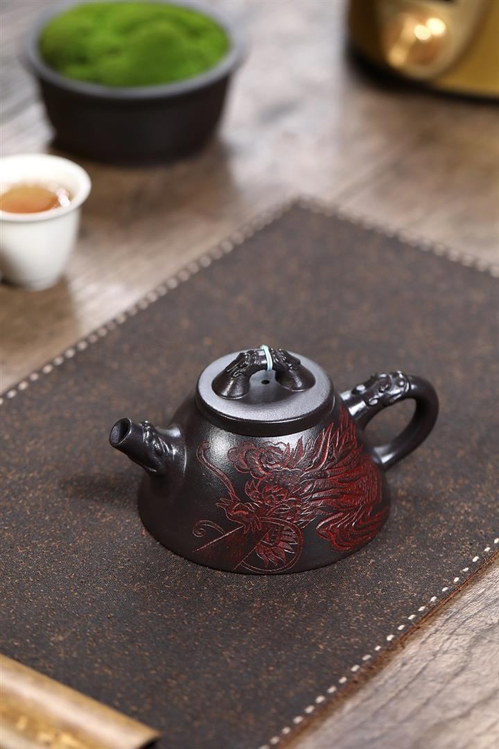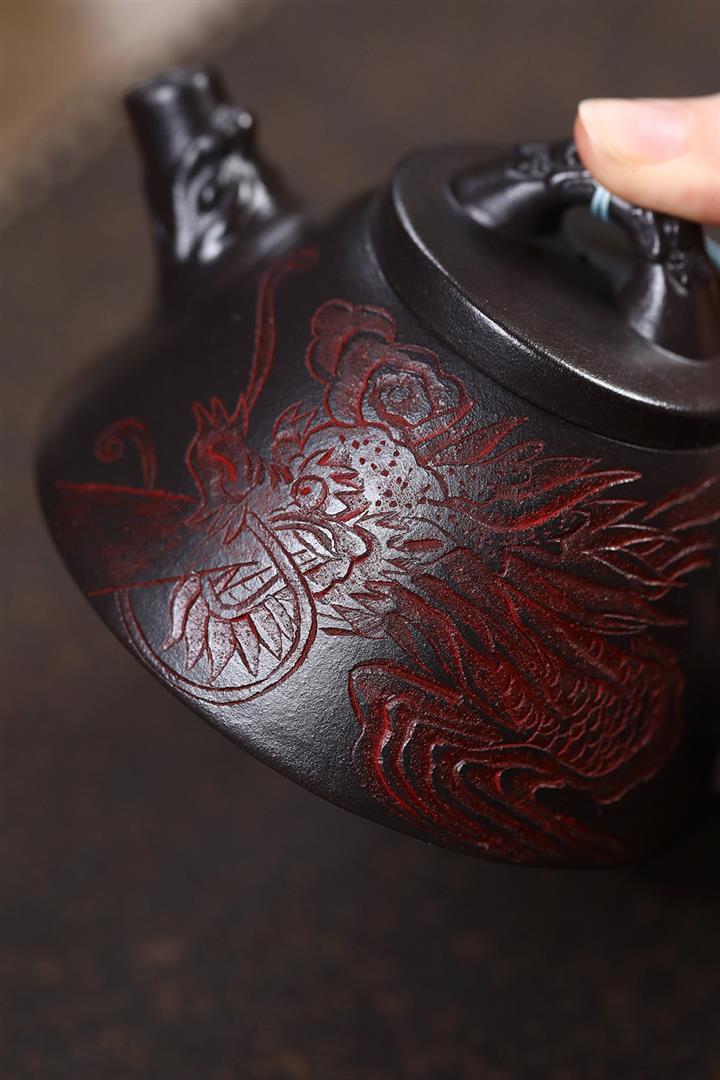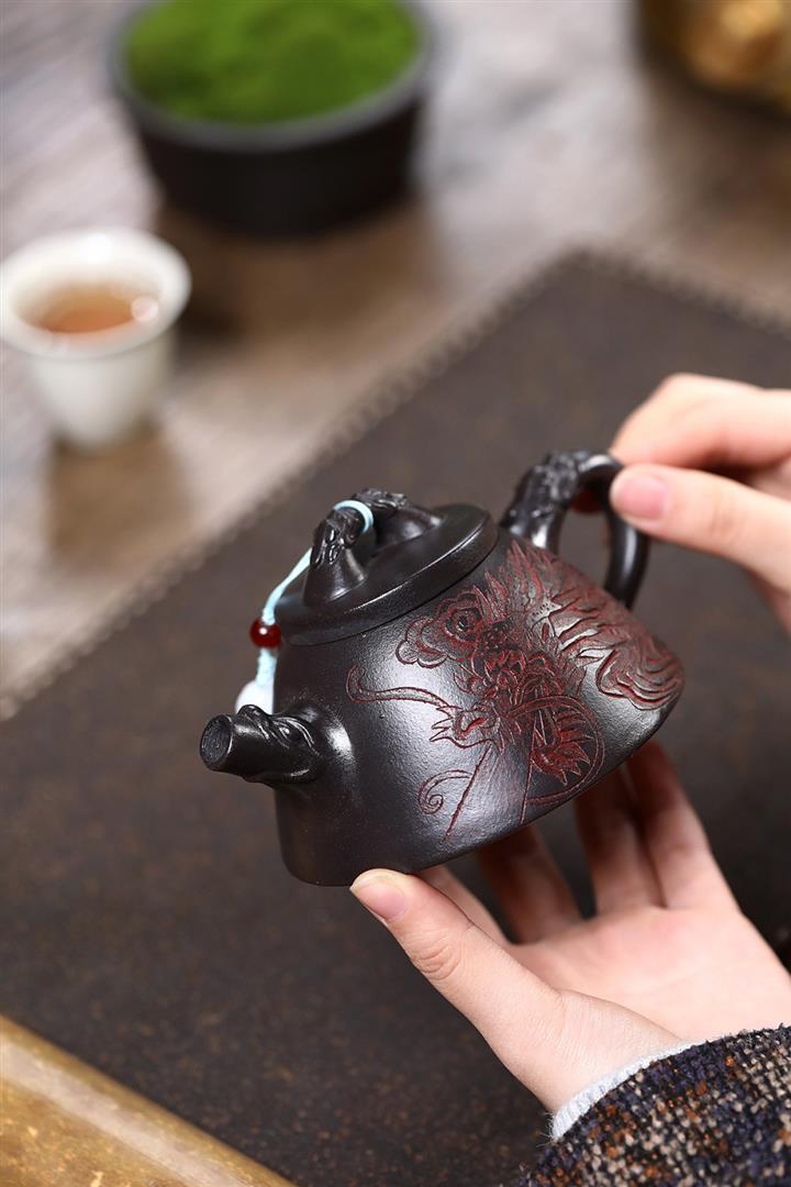 【作品介紹】此款壺形線條流暢,壺把,壺嘴,壺身壹氣呵成栩栩如生,是收藏把玩的好壺,泥料色澤古樸典雅,日久使用,漸露鋒芒,養成變化快,溫潤莊重,用其泡茶,使用的年代久,壺身就溫潤,泡出來的茶湯也就醇郁芳馨。
