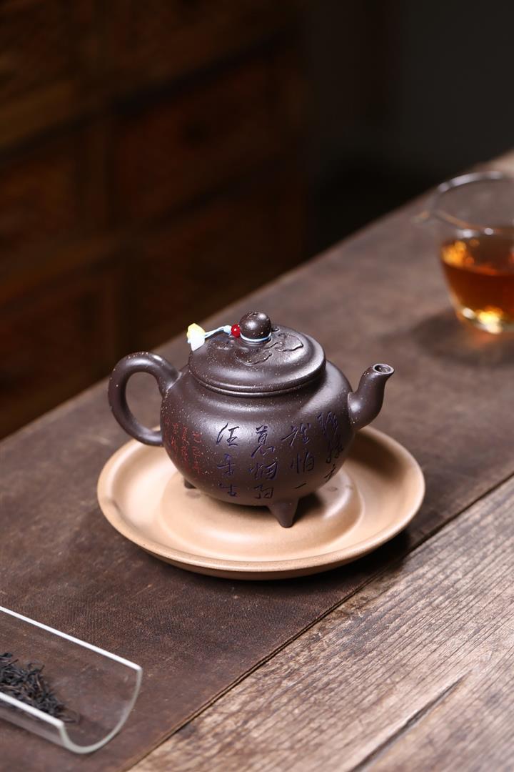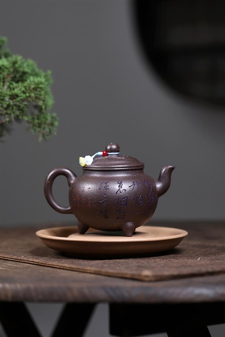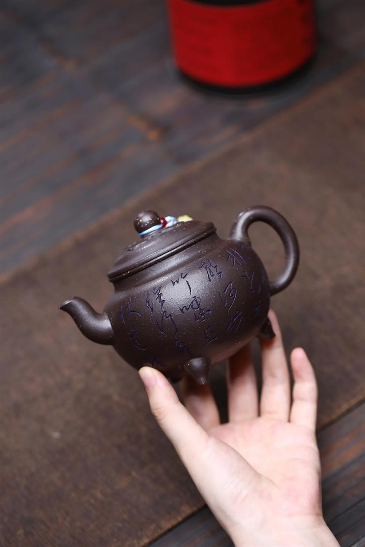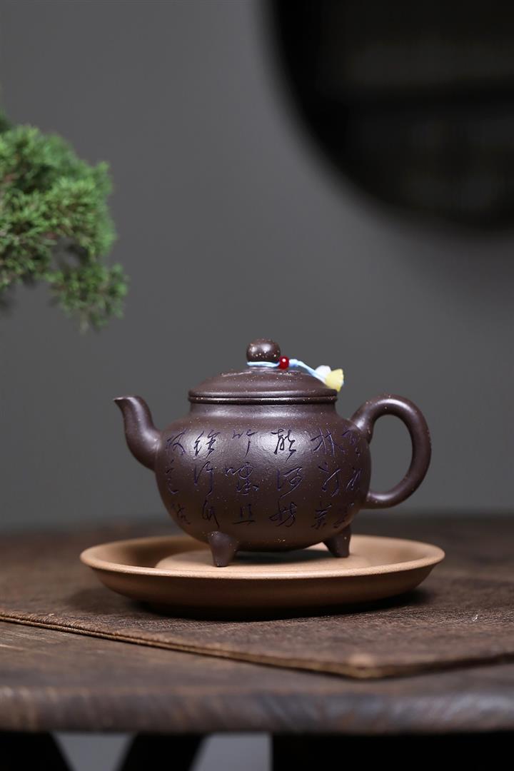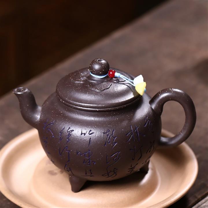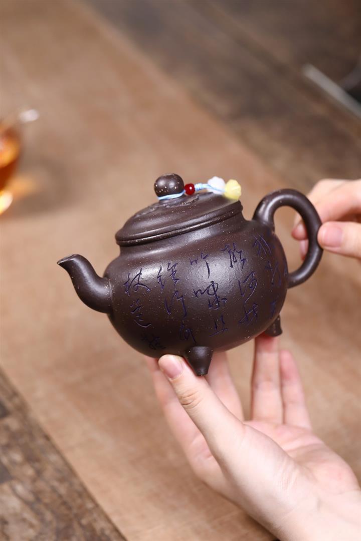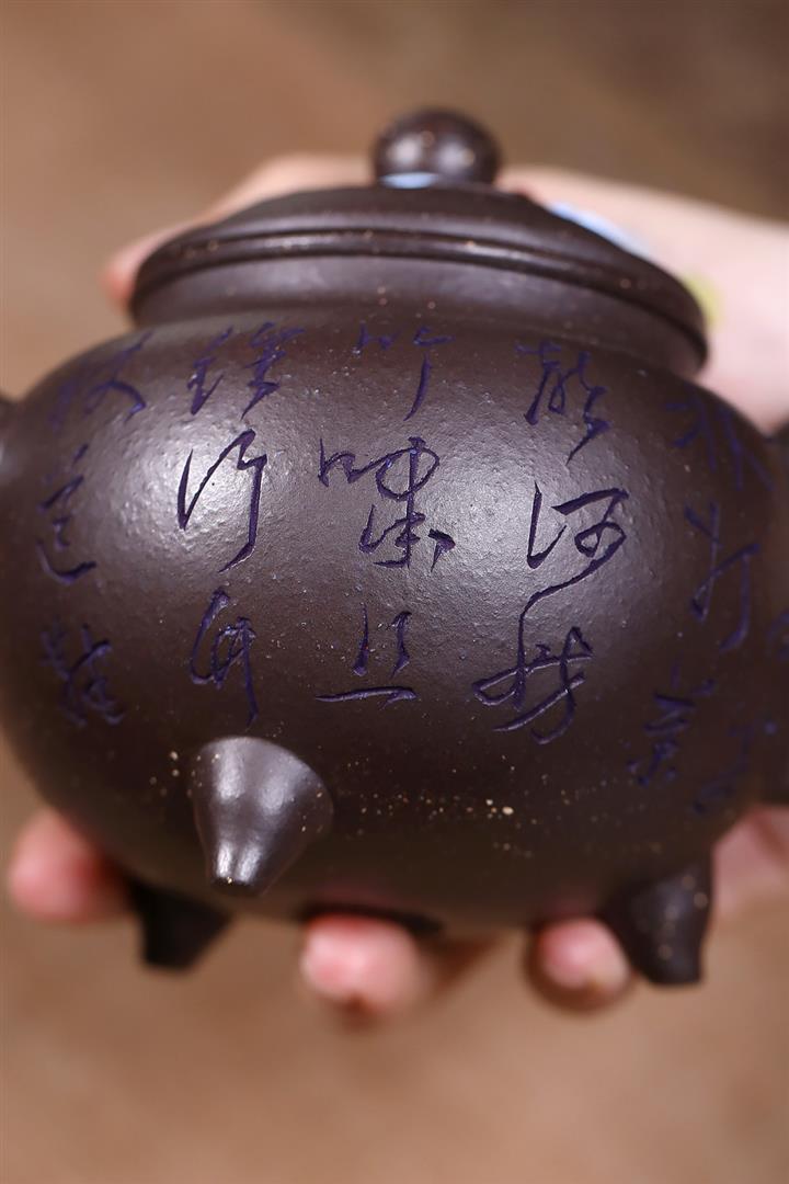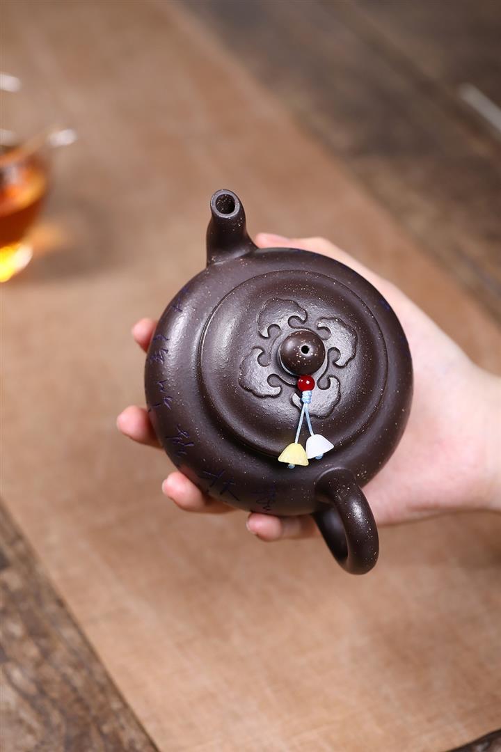原礦古烏泥滿刻花鳥西施茶壺POT7817
