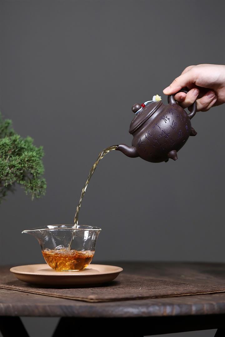 【泥料特點】砂土氣重,似淳實農民,日久使用,漸露鋒芒,養成變化,溫潤莊重。紫砂是壹種雙重氣孔結構的多孔性材質,氣孔微細,密度高。用紫砂壺沏茶,不失原味,且香不渙散,得茶之真香真味。紫砂使用越久,壺身色澤越發光亮照人,氣韻溫雅。紫砂壺長久使用器身會因撫摸擦拭,變得越發溫潤光澤。
