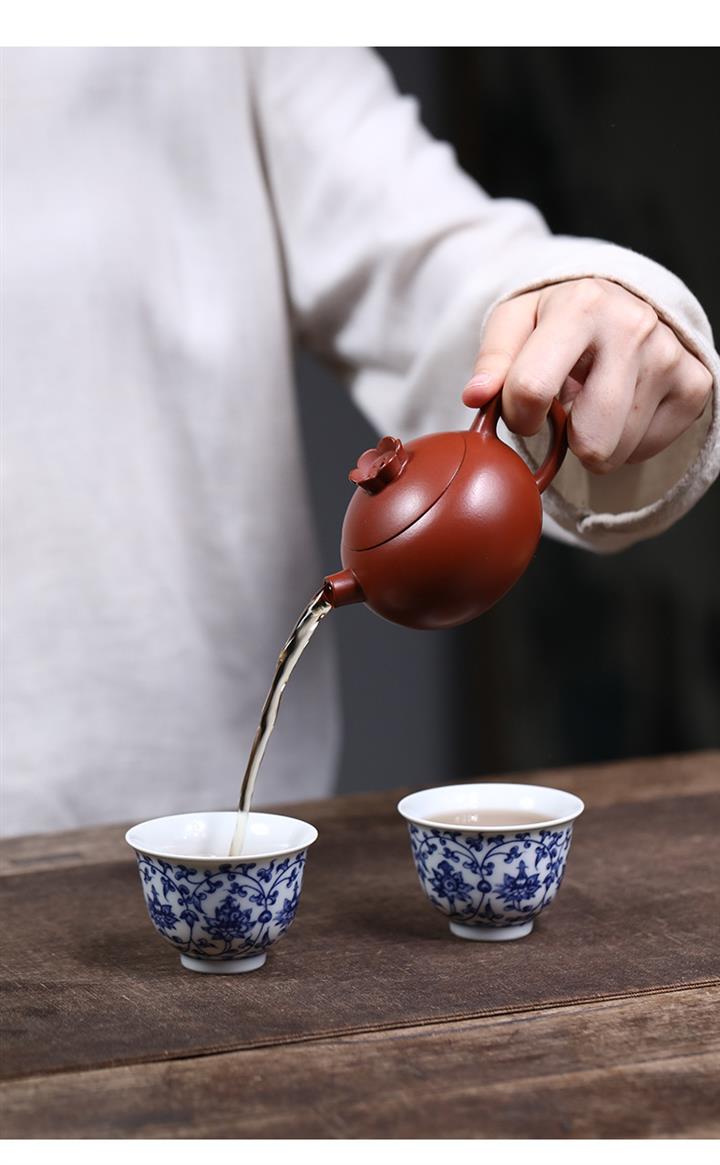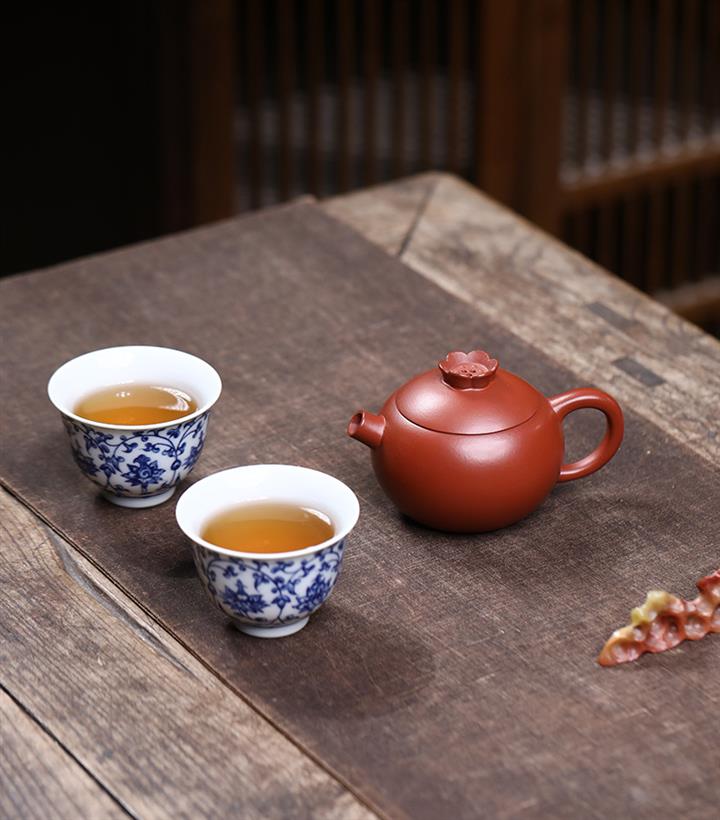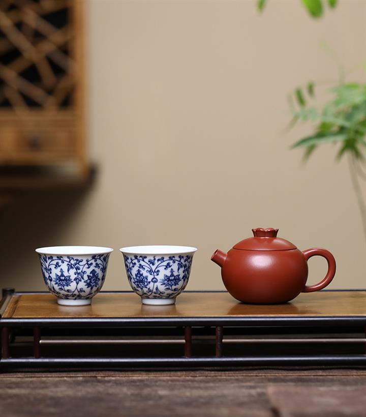 【容量】壺約130cc,紅泥單杯約50cc,青花瓷杯約70cc,
