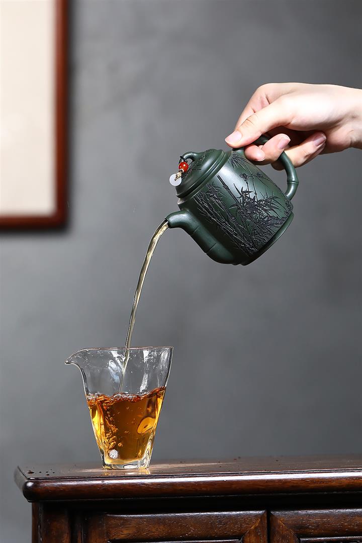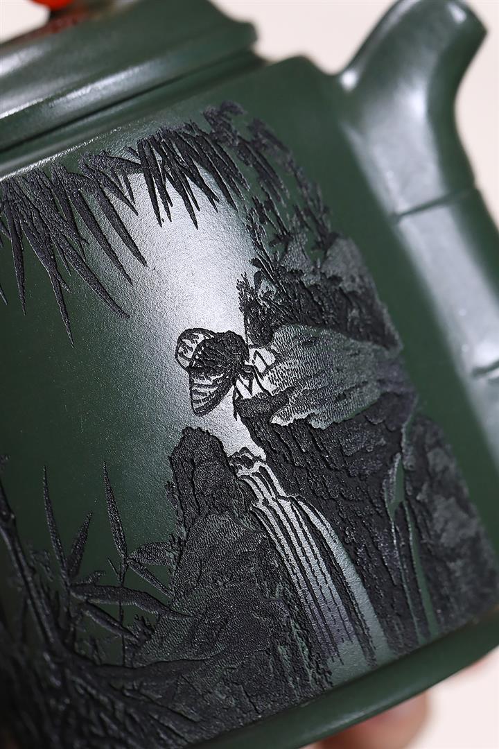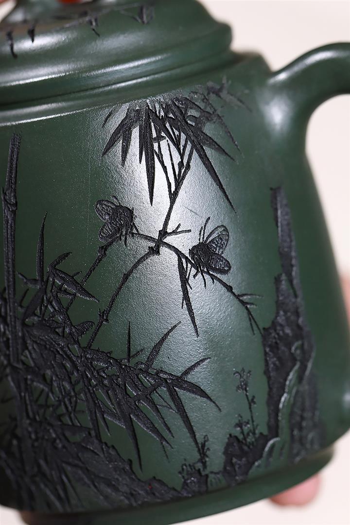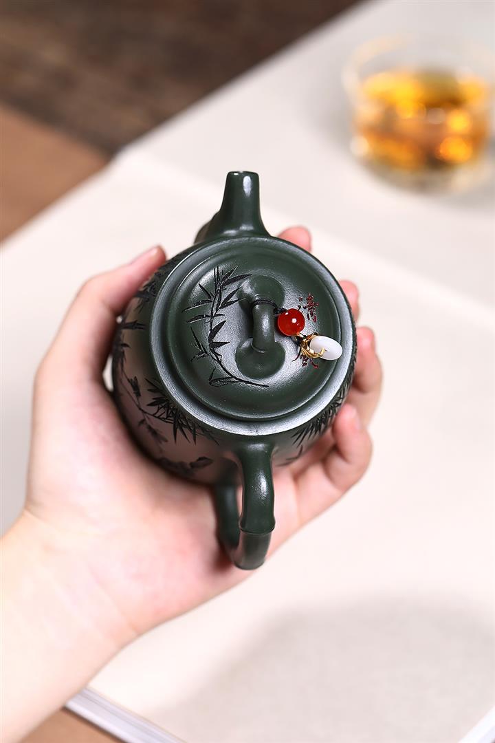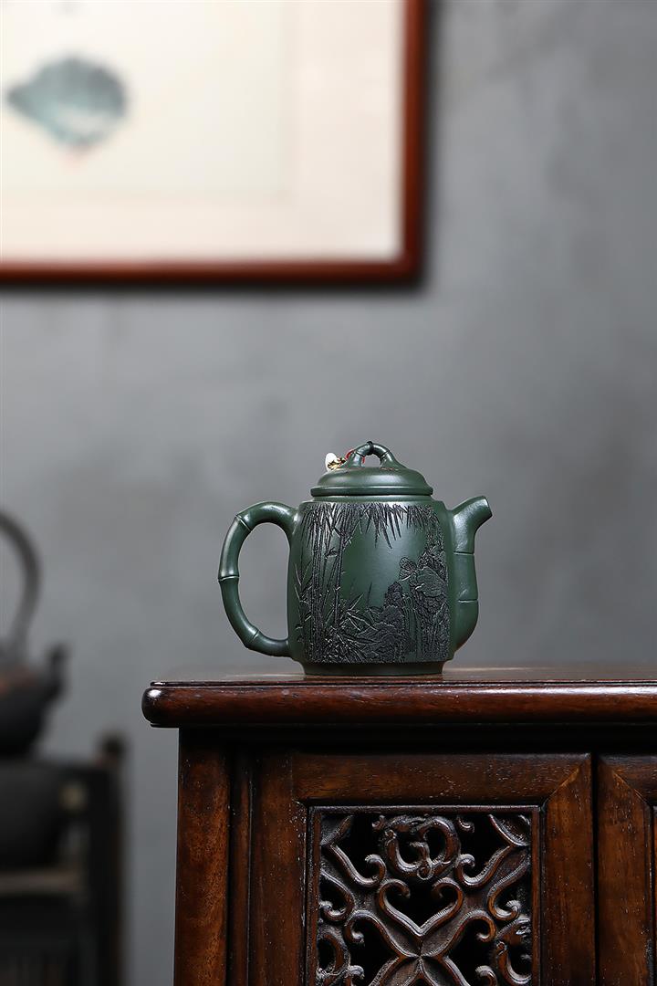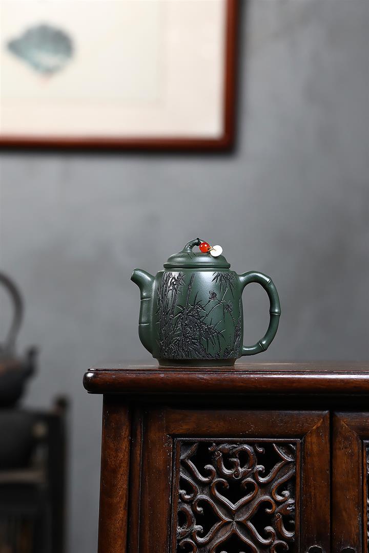 250cc原礦綠泥清風竹韻泡茶壺POT7922