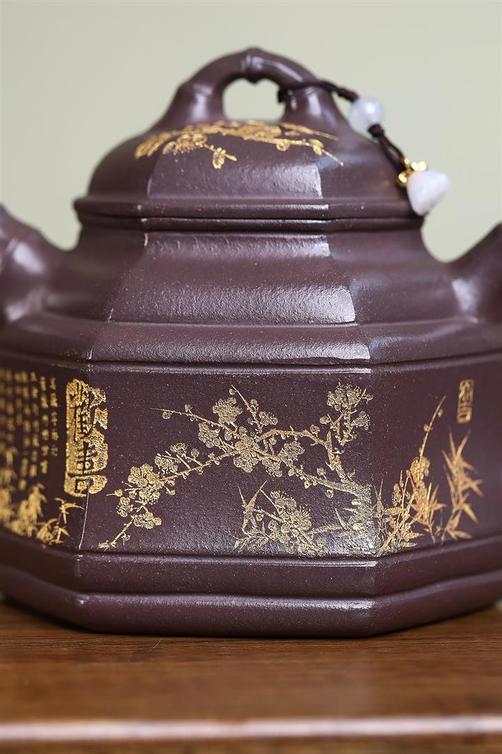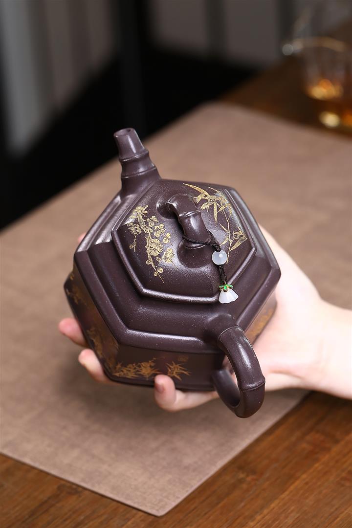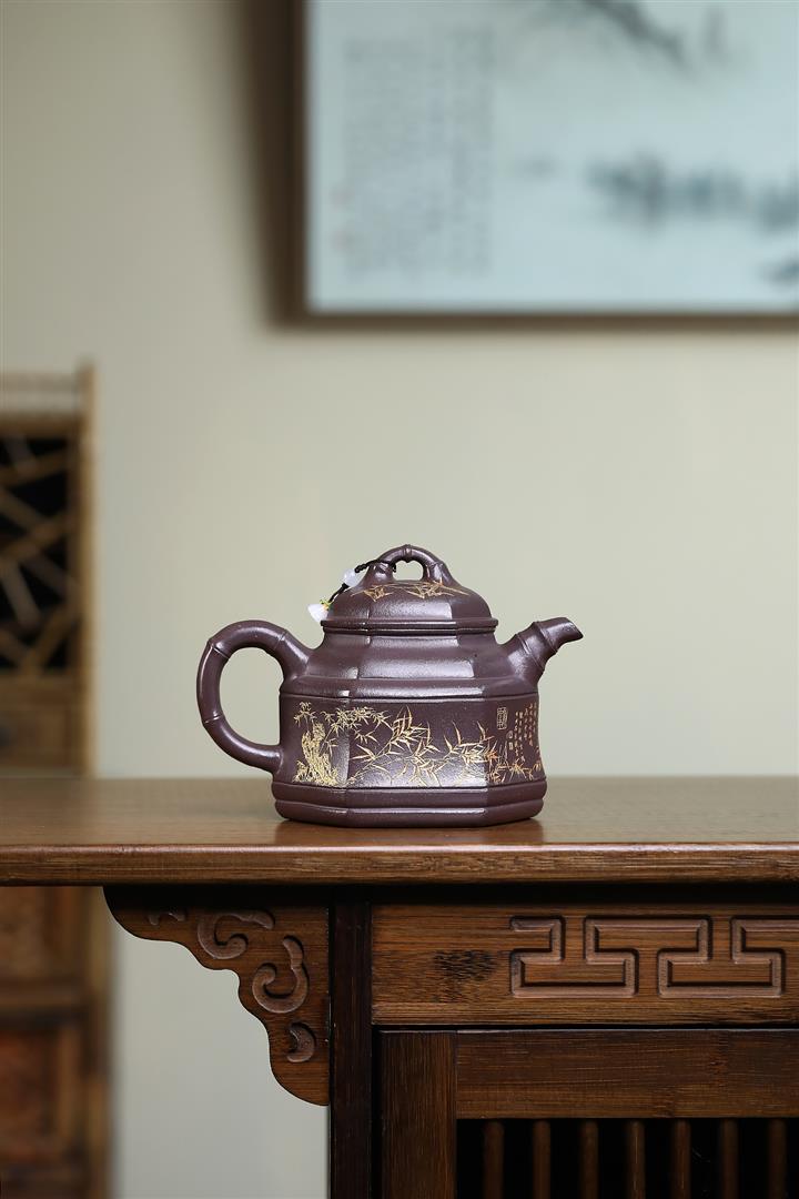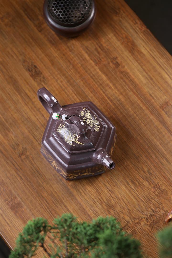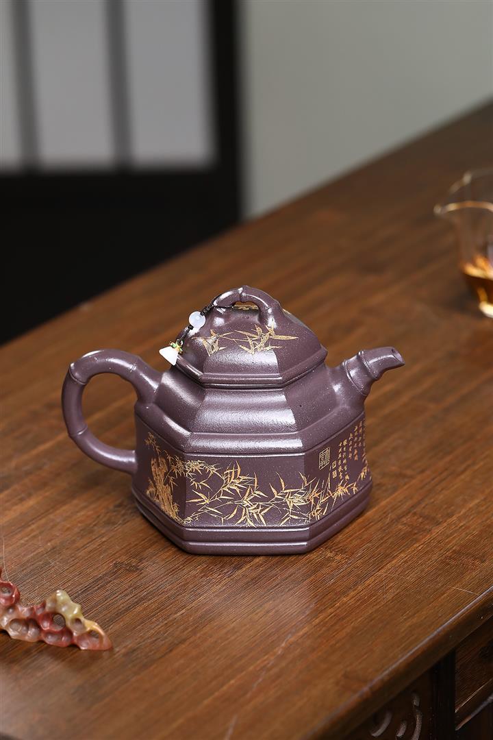 500cc原礦天青泥六方竹鼎茶壺POT7923
