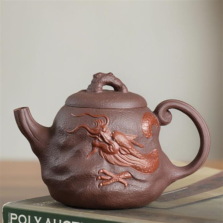 250cc原礦老紫泥浮雕祥龍戲珠茶壺POT7937