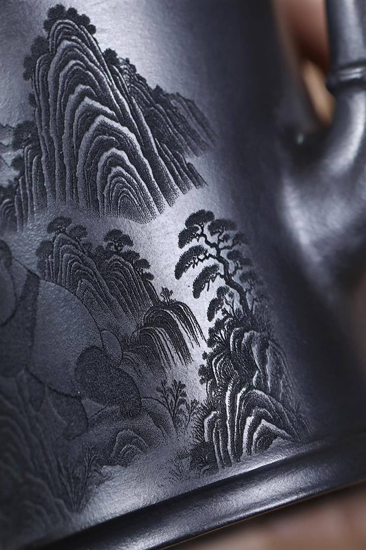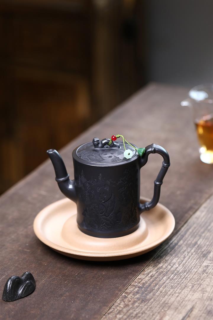 320cc原礦石黃泥滿刻熊貓茶壺POT7934