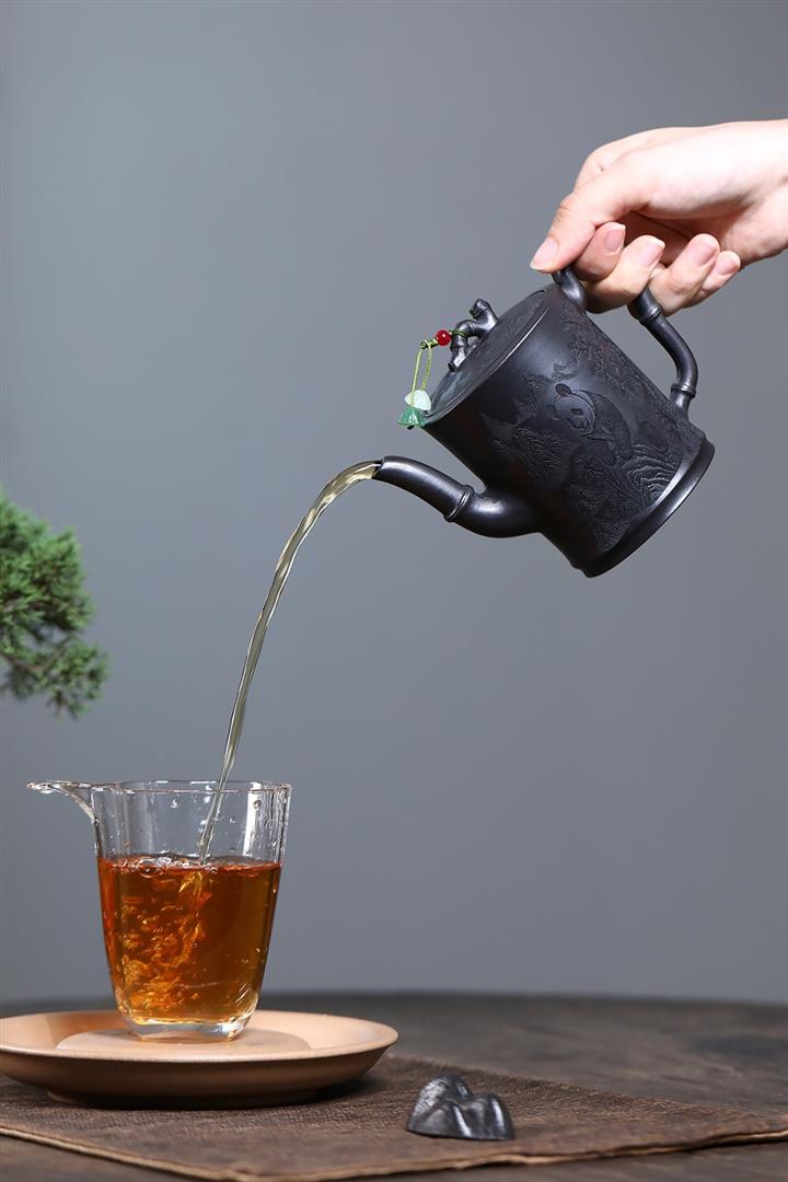 【泥料特點】砂土氣重,似淳實農民,日久使用,漸露鋒芒,養成變化,溫潤莊重。紫砂是壹種雙重氣孔結構的多孔性材質,氣孔微細,密度高。用紫砂壺沏茶,不失原味,且香不渙散,得茶之真香真味。紫砂使用越久,壺身色澤越發光亮照人,氣韻溫雅。紫砂壺長久使用器身會因撫摸擦拭,變得越發溫潤光澤。