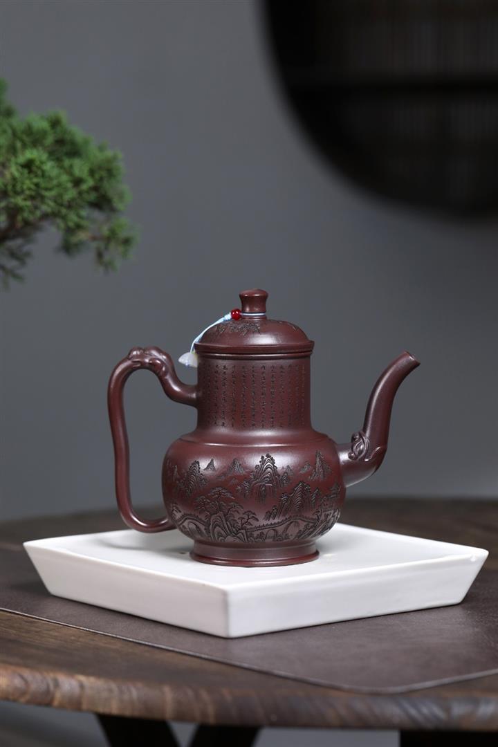 【作品介紹】此款壺形線條流暢,壺把,壺嘴,壺身壹氣呵成栩栩如生,是收藏把玩的好壺,泥料色澤古樸典雅,日久使用,漸露鋒芒,養成變化快,溫潤莊重,用其泡茶,使用的年代久,壺身就溫潤,泡出來的茶湯也就醇郁芳馨。