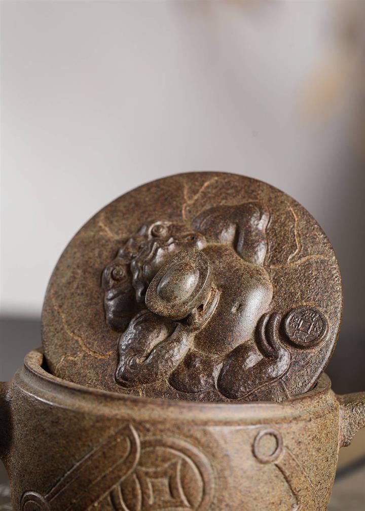 200cc原礦柴燒段泥招財進寶茶壺POT7956