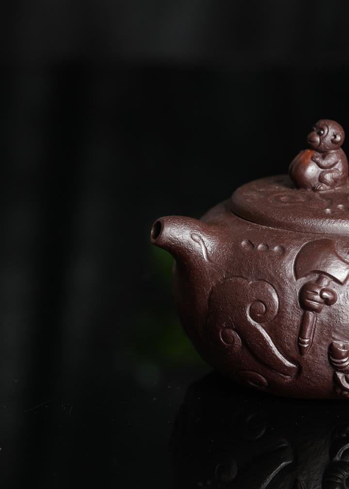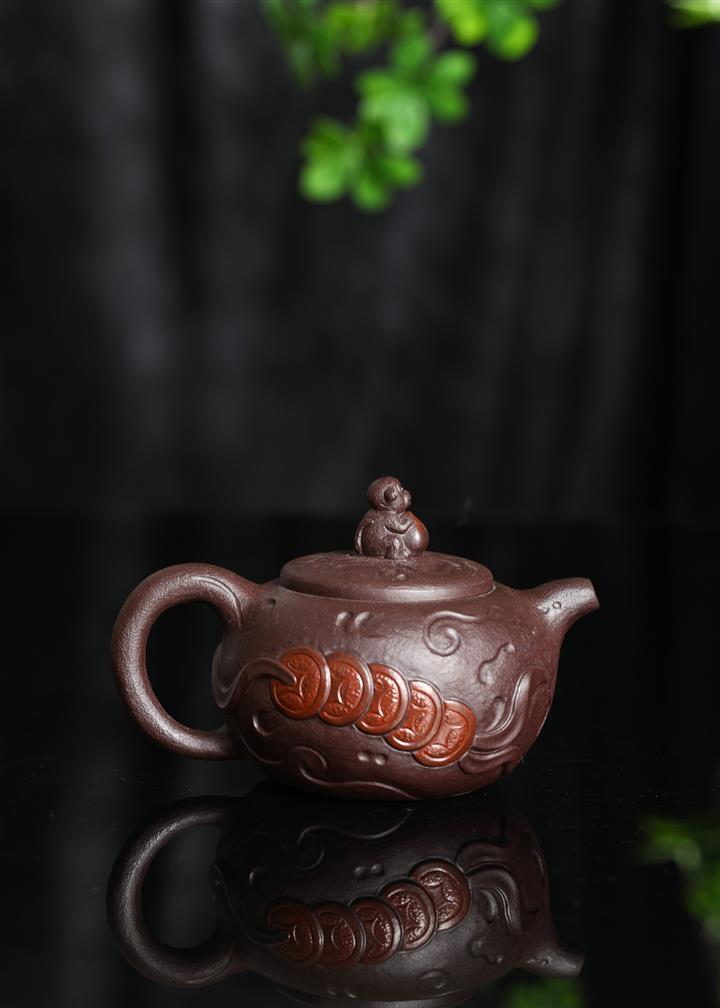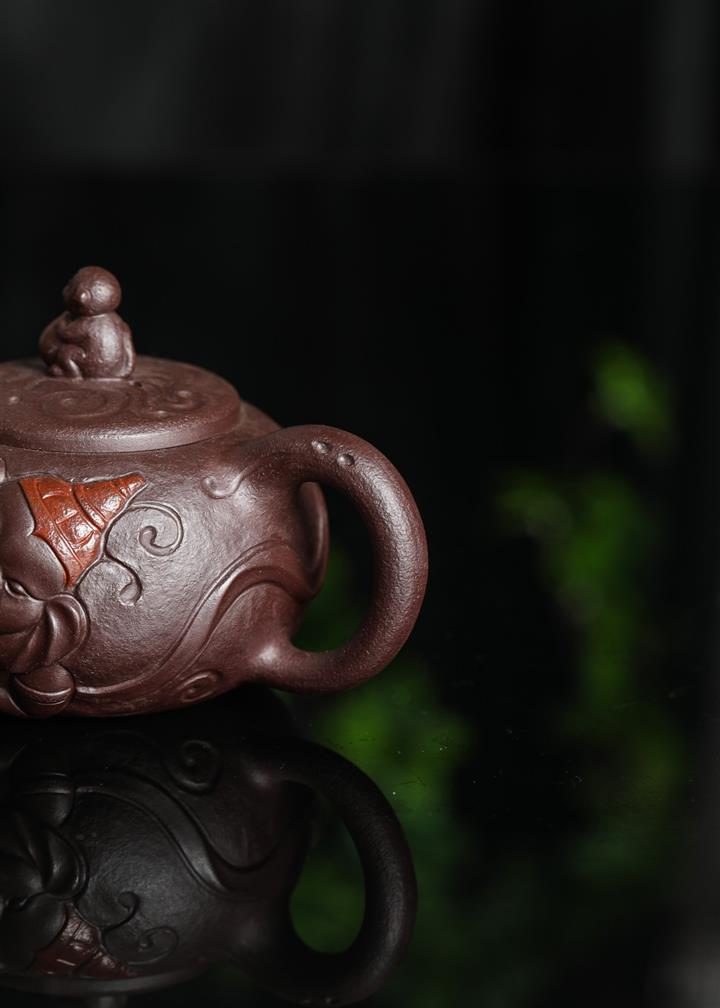 630cc原礦古銅泥滿刻百鳥朝鳳茶壺POT7969