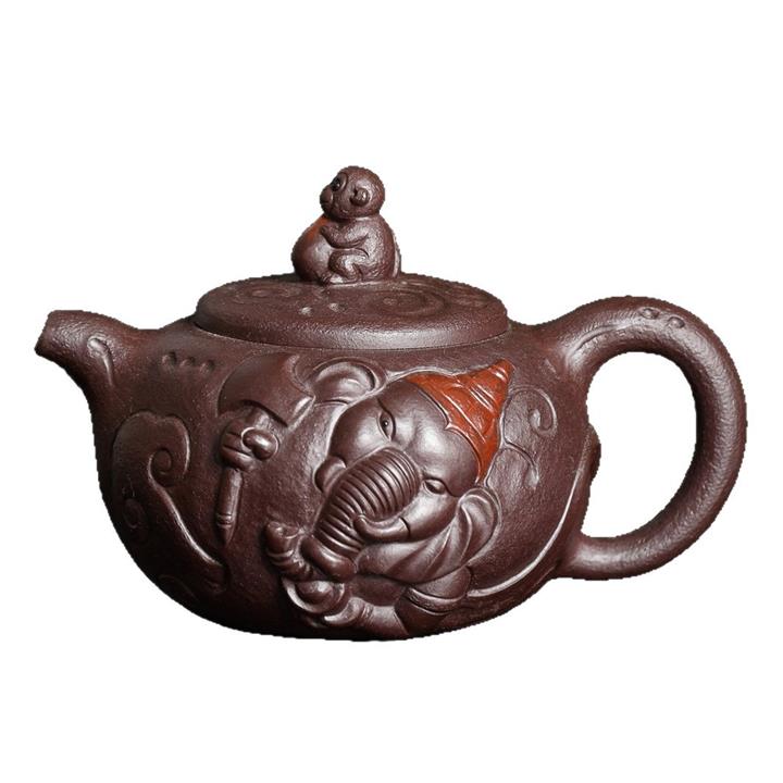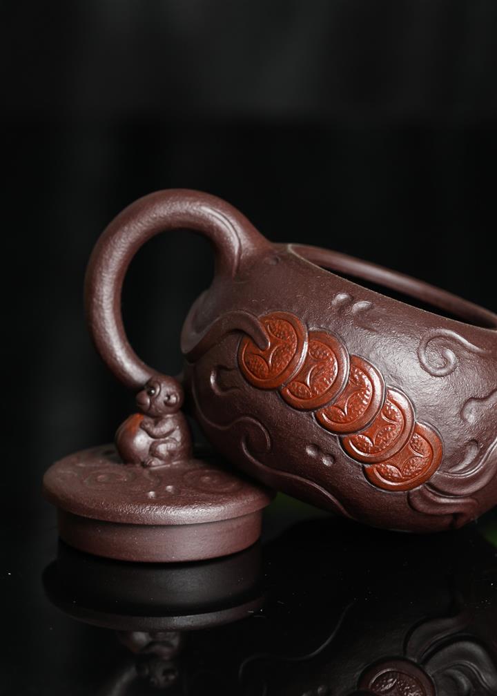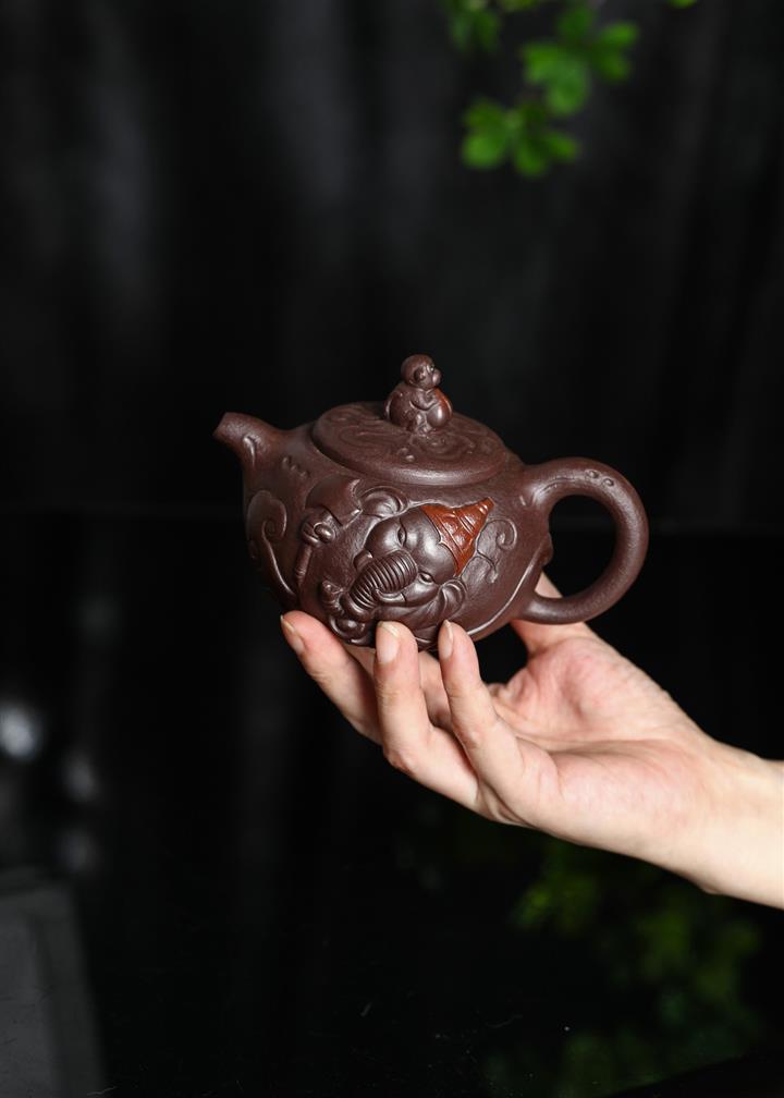 480cc原礦石黃泥滿刻萬馬奔騰茶壺POT7973