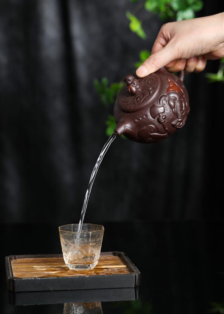 【泥料特點】砂土氣重,似淳實農民,日久使用,漸露鋒芒,養成變化,溫潤莊重。紫砂是壹種雙重氣孔結構的多孔性材質,氣孔微細,密度高。用紫砂壺沏茶,不失原味,且香不渙散,得茶之真香真味。紫砂使用越久,壺身色澤越發光亮照人,氣韻溫雅。紫砂壺長久使用器身會因撫摸擦拭,變得越發溫潤光澤。