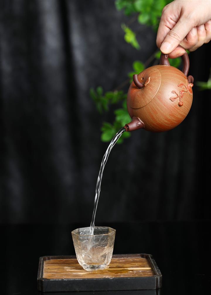 【泥料特點】砂土氣重,似淳實農民,日久使用,漸露鋒芒,養成變化,溫潤莊重。紫砂是壹種雙重氣孔結構的多孔性材質,氣孔微細,密度高。用紫砂壺沏茶,不失原味,且香不渙散,得茶之真香真味。紫砂使用越久,壺身色澤越發光亮照人,氣韻溫雅。紫砂壺長久使用器身會因撫摸擦拭,變得越發溫潤光澤。