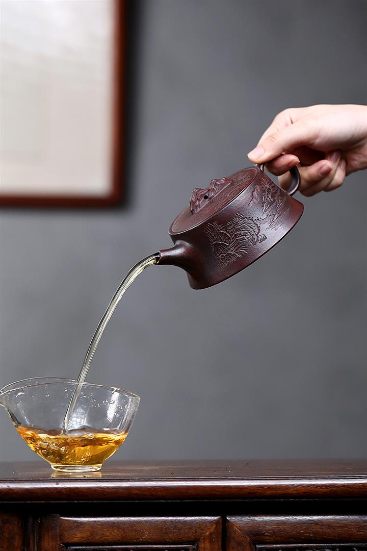 【泥料特點】砂土氣重,似淳實農民,日久使用,漸露鋒芒,養成變化,溫潤莊重。紫砂是壹種雙重氣孔結構的多孔性材質,氣孔微細,密度高。用紫砂壺沏茶,不失原味,且香不渙散,得茶之真香真味。紫砂使用越久,壺身色澤越發光亮照人,氣韻溫雅。紫砂壺長久使用器身會因撫摸擦拭,變得越發溫潤光澤。