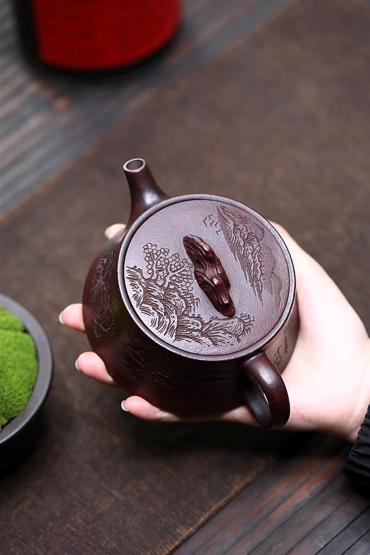 630cc原礦古銅泥滿刻百鳥朝鳳茶壺POT7969