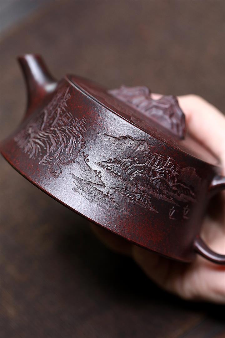 220cc原礦鐵血紅砂觀山漢瓦茶壺POT7965