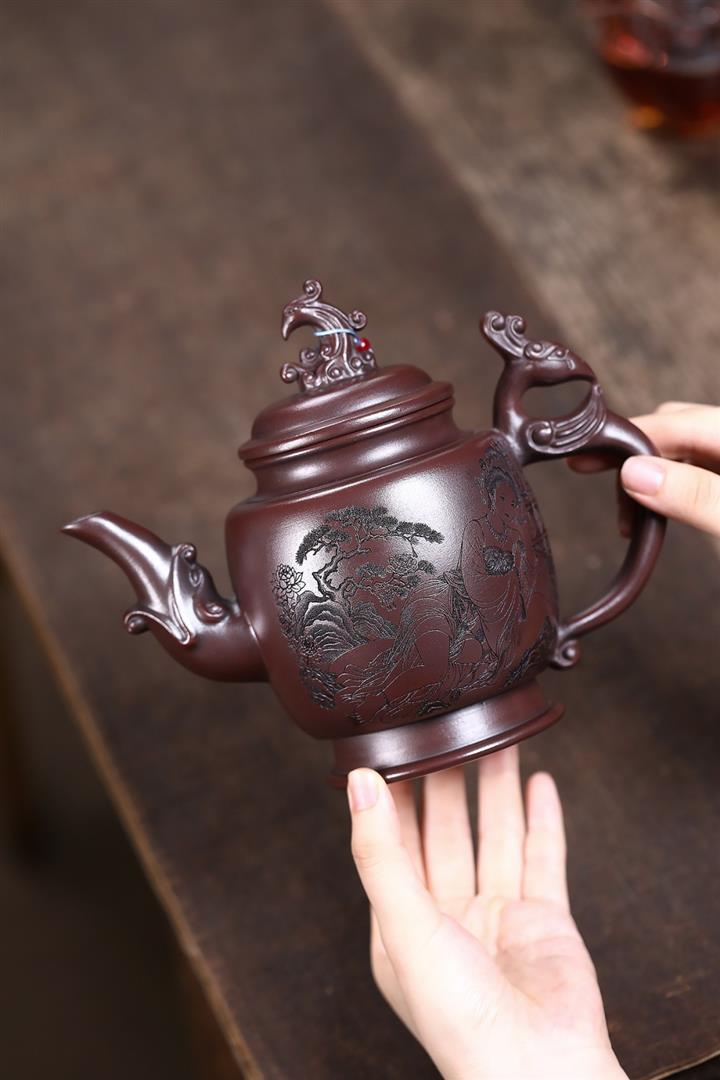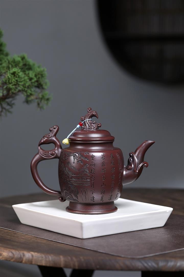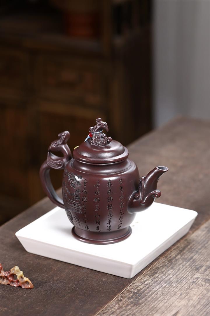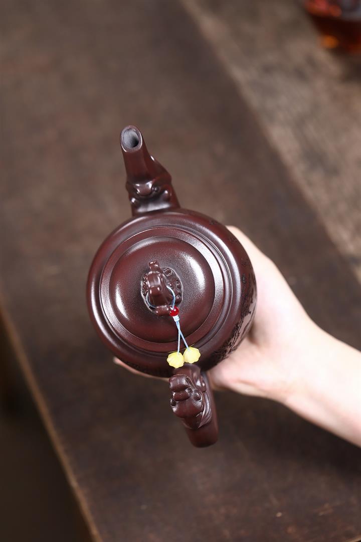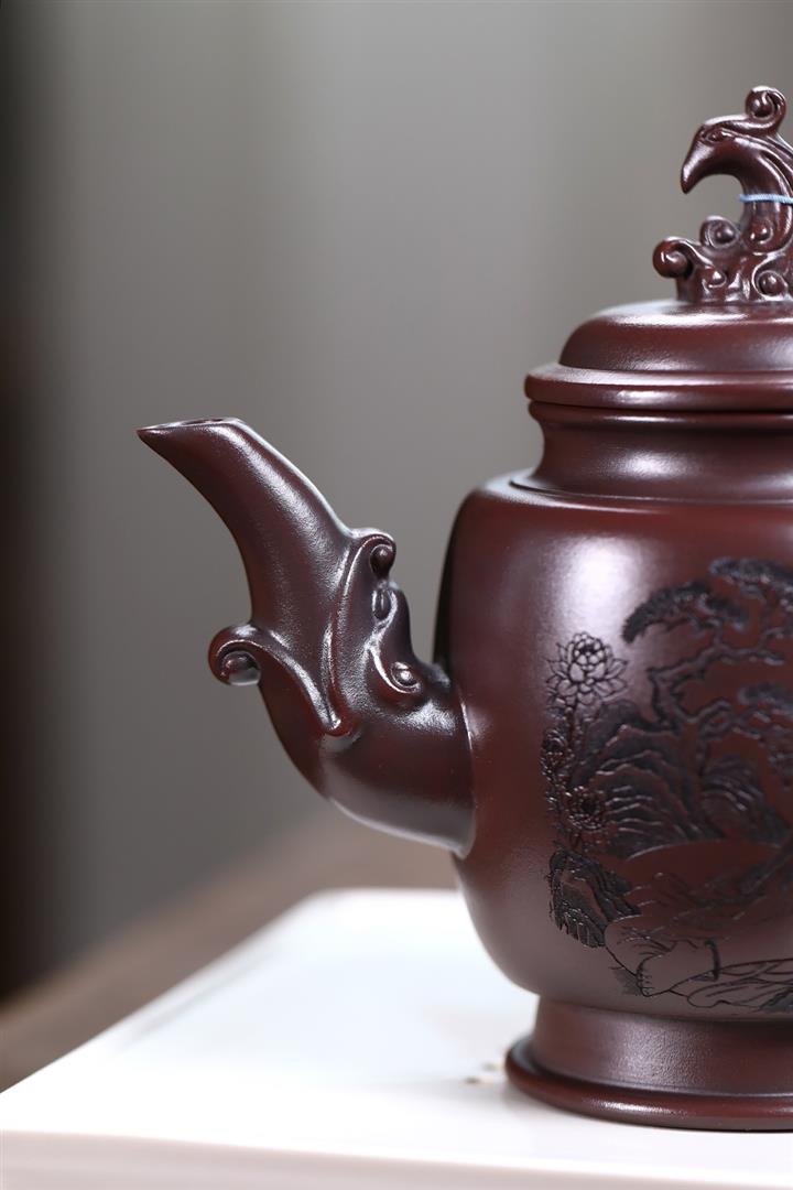 630cc原礦古銅泥滿刻百鳥朝鳳茶壺POT7969