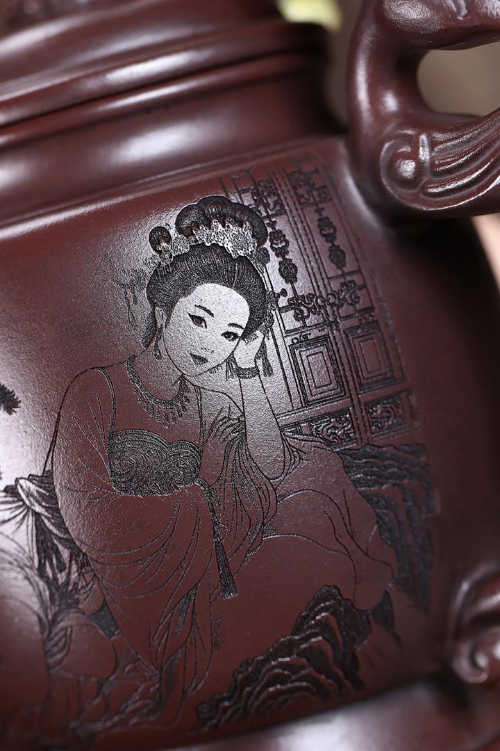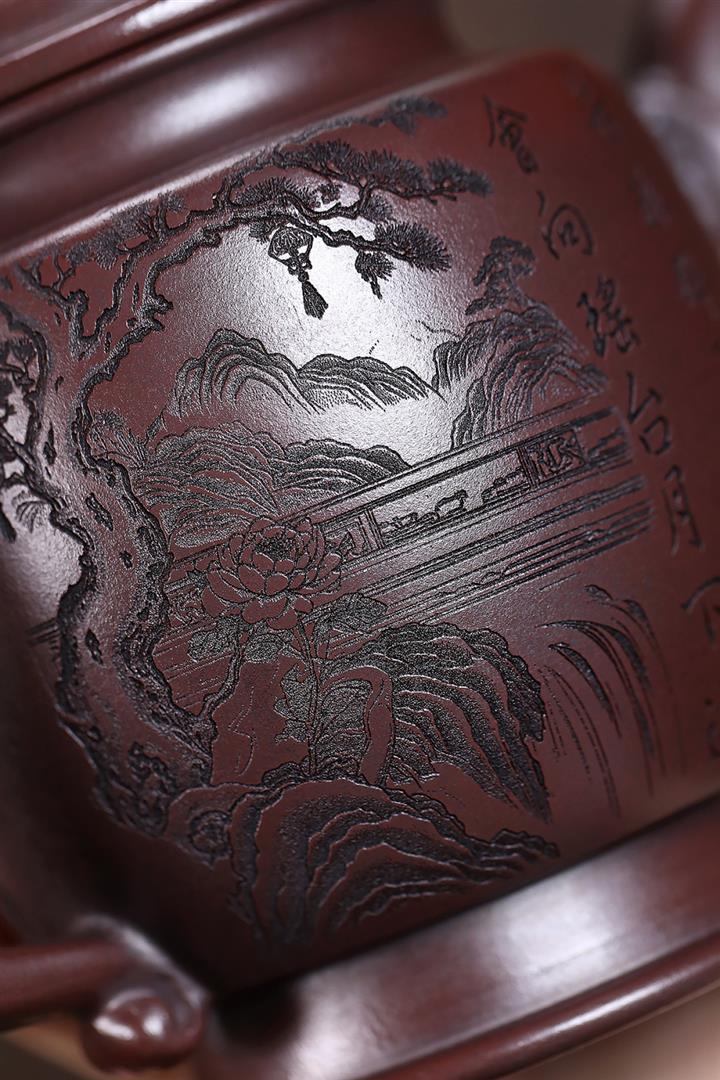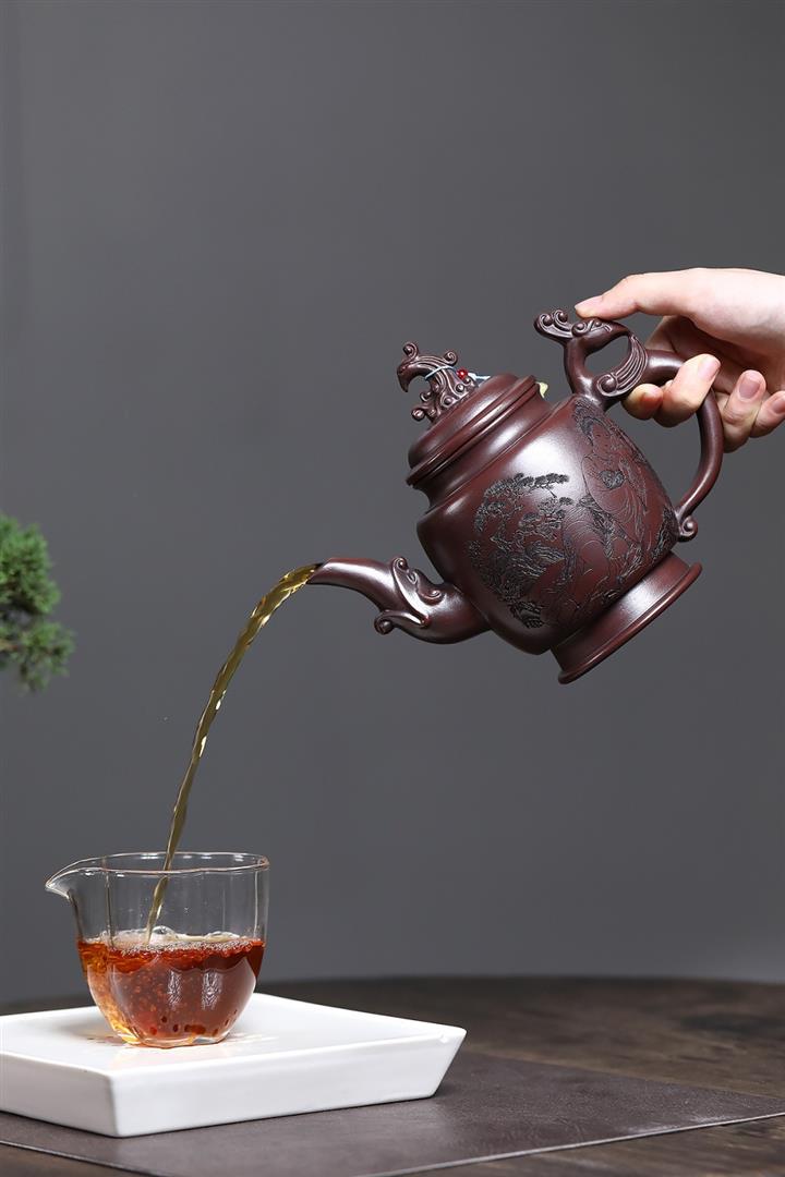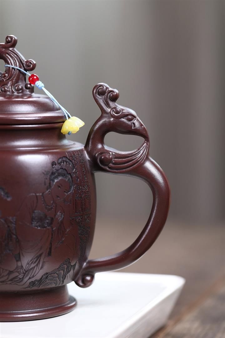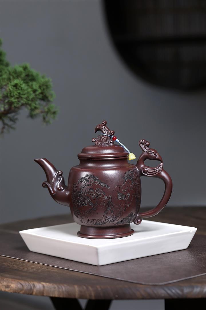 630cc原礦古銅泥滿刻百鳥朝鳳茶壺POT7969