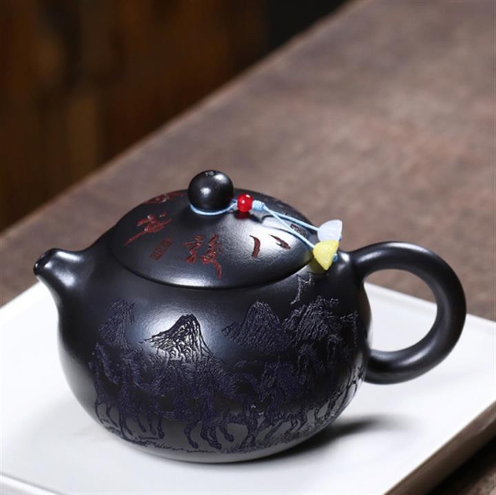 480cc原礦石黃泥滿刻萬馬奔騰茶壺POT7973