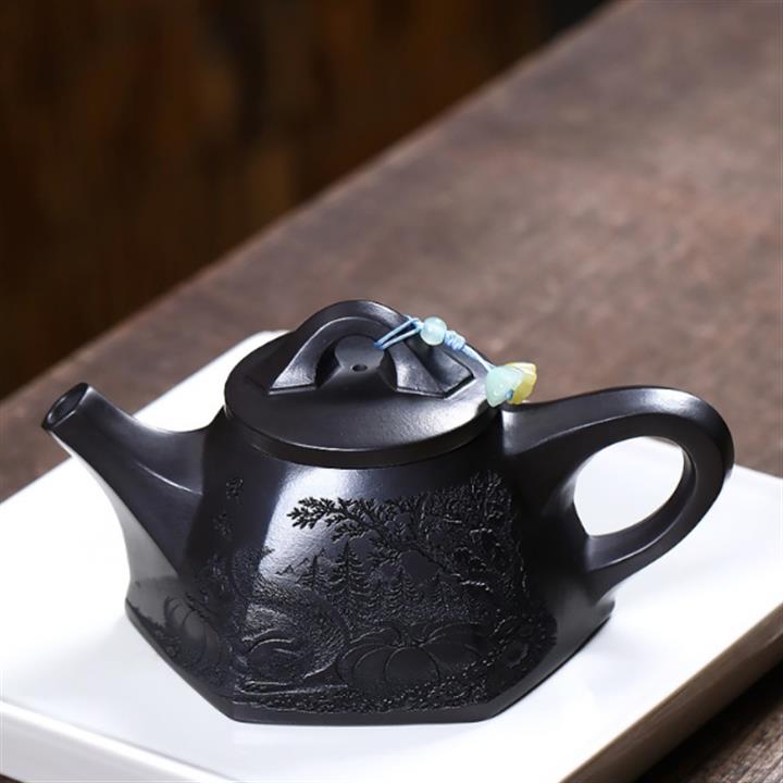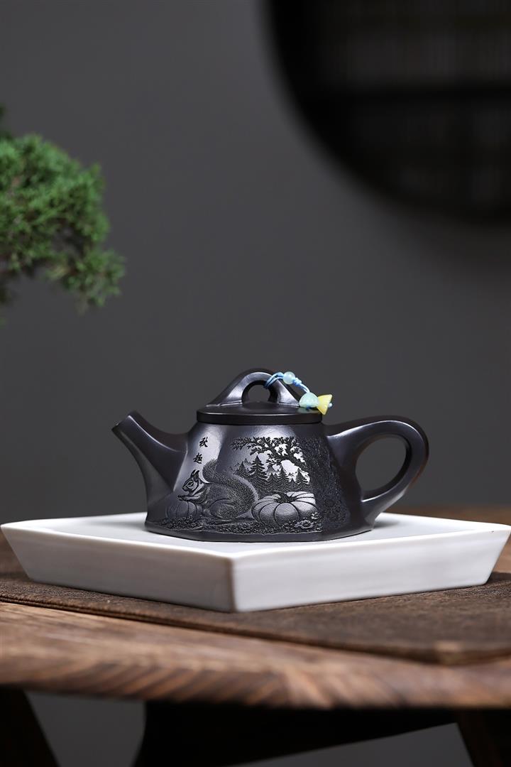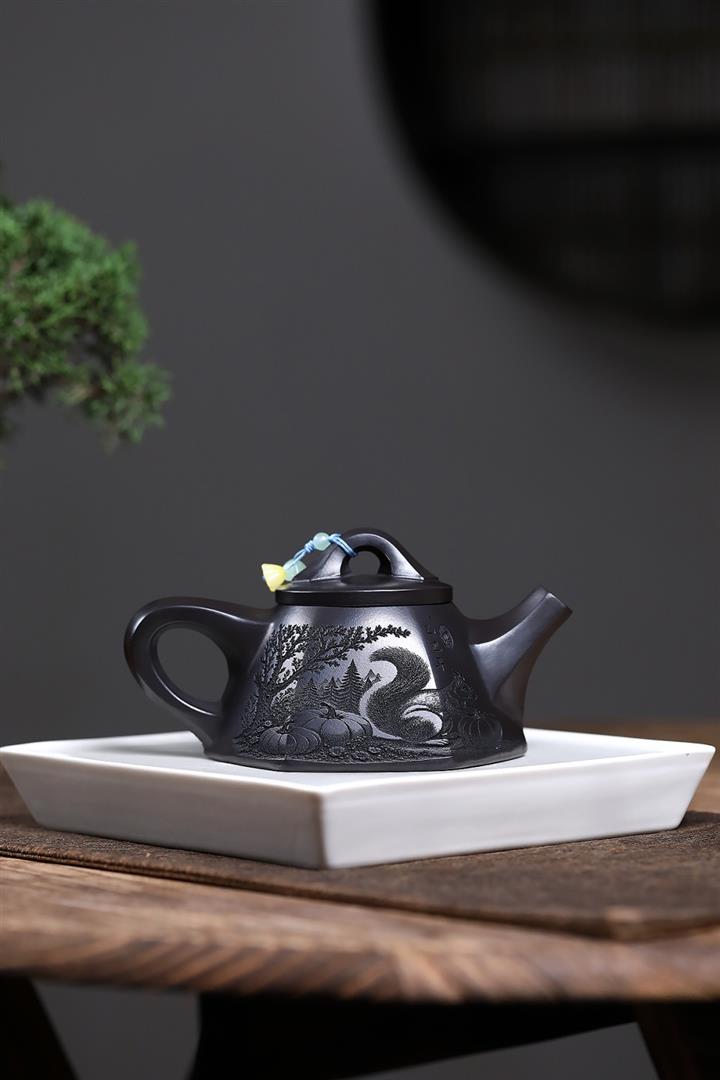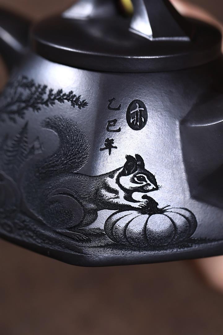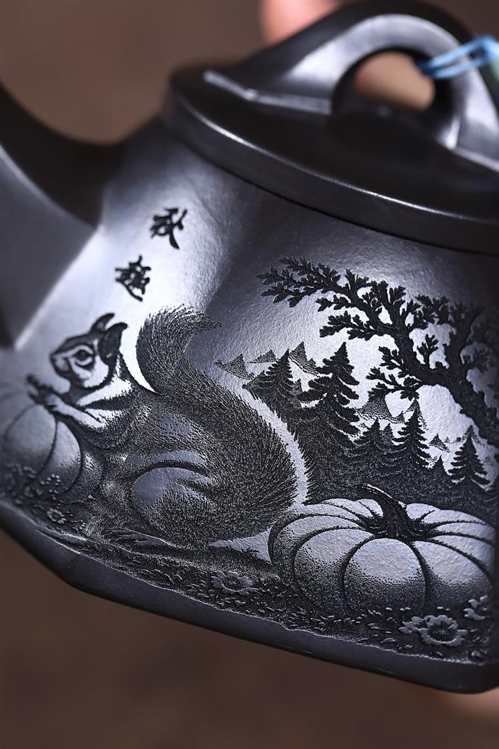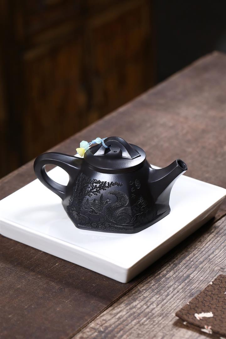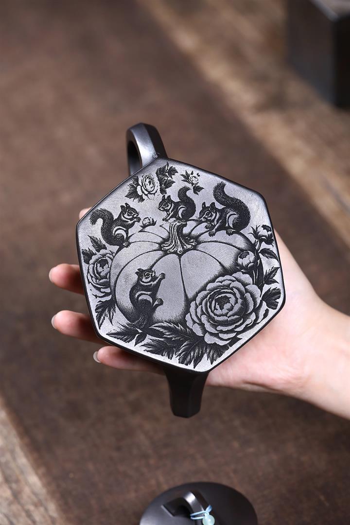 480cc原礦石黃泥滿刻萬馬奔騰茶壺POT7973