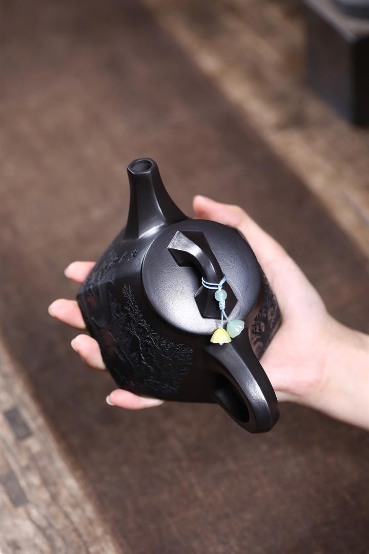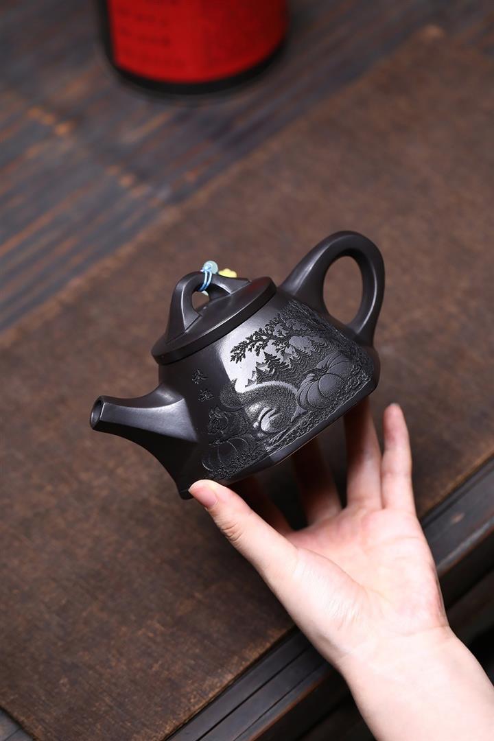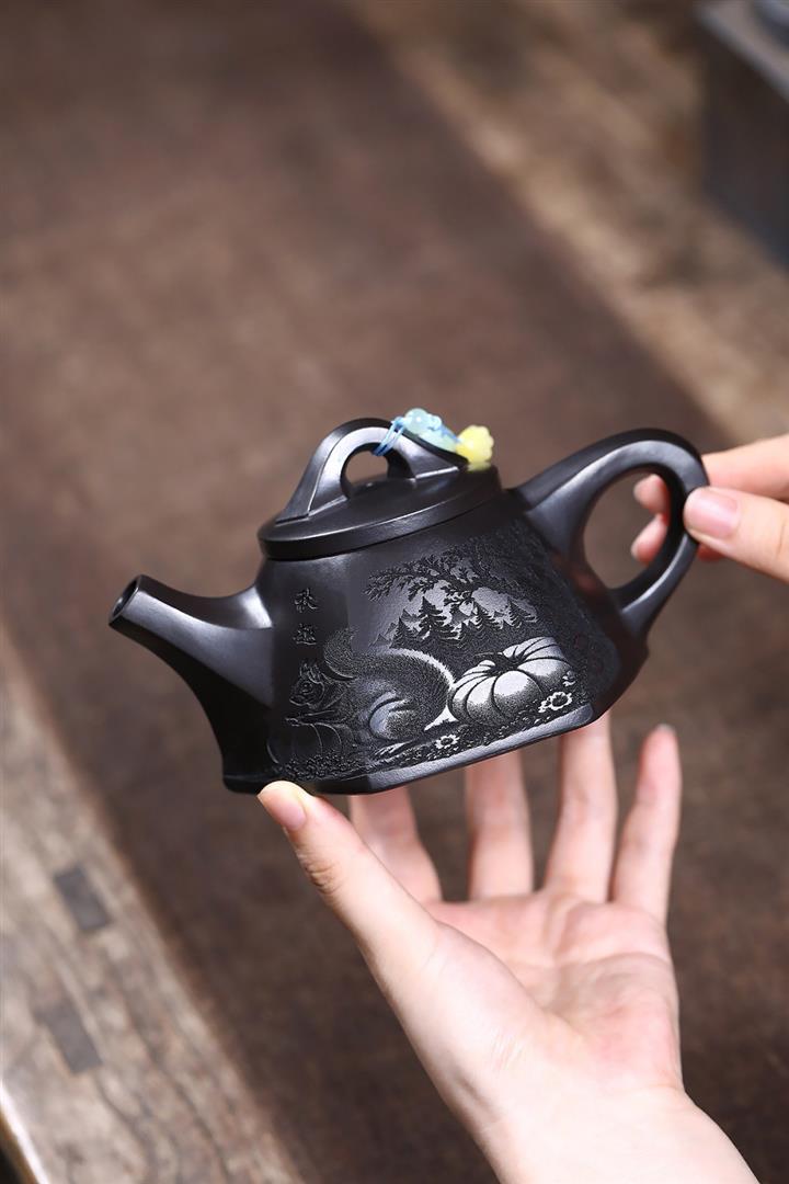 【作品介紹】此款壺形線條流暢,壺把,壺嘴,壺身壹氣呵成栩栩如生,是收藏把玩的好壺,泥料色澤古樸典雅,日久使用,漸露鋒芒,養成變化快,溫潤莊重,用其泡茶,使用的年代久,壺身就溫潤,泡出來的茶湯也就醇郁芳馨。