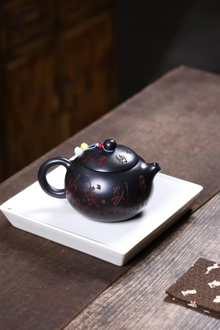 【作品介紹】此款壺形線條流暢,壺把,壺嘴,壺身壹氣呵成栩栩如生,是收藏把玩的好壺,泥料色澤古樸典雅,日久使用,漸露鋒芒,養成變化快,溫潤莊重,用其泡茶,使用的年代久,壺身就溫潤,泡出來的茶湯也就醇郁芳馨。