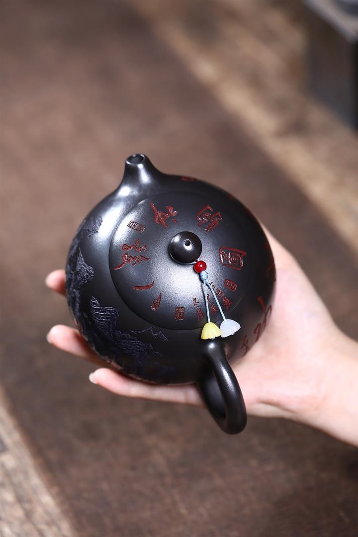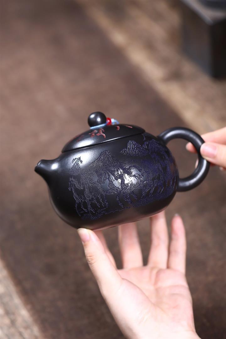 480cc原礦石黃泥滿刻萬馬奔騰茶壺POT7973