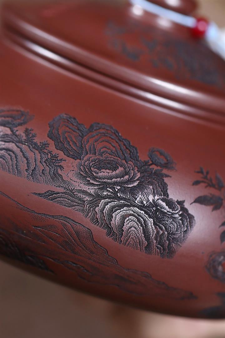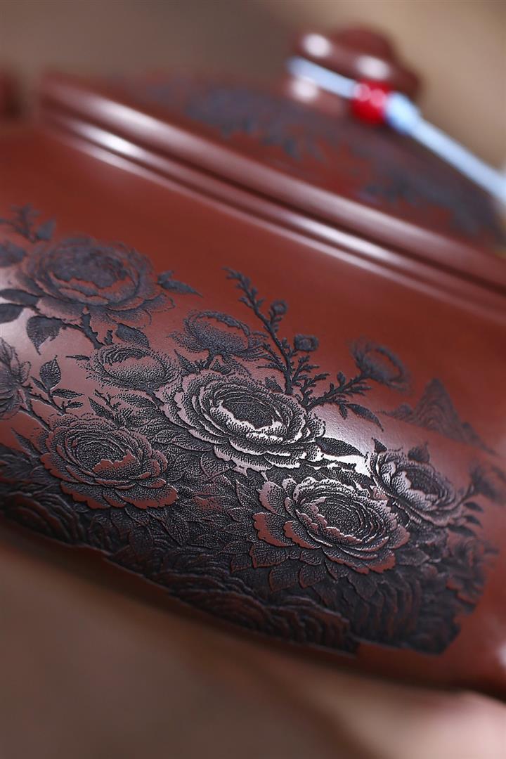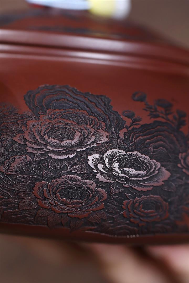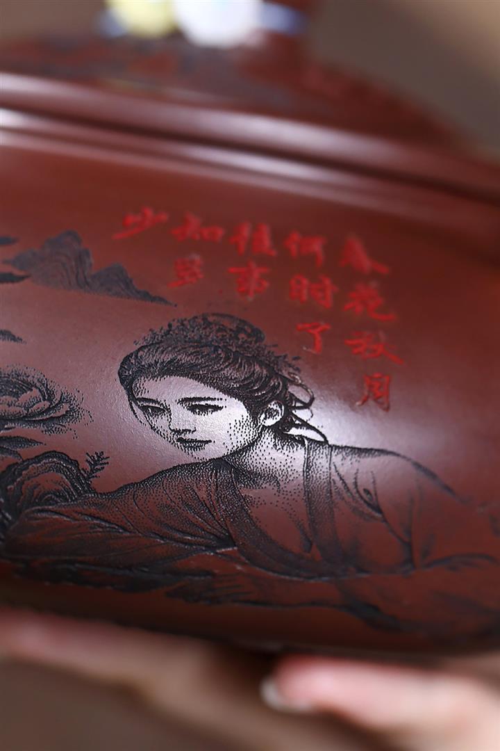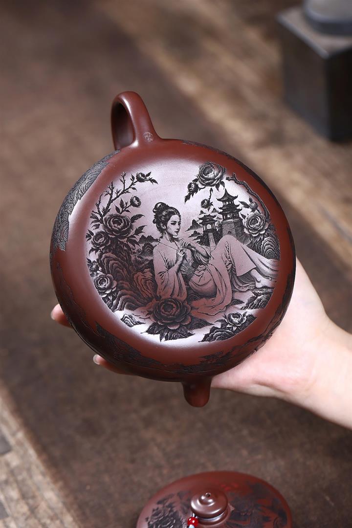 550cc原礦古銅泥牡丹配美人寒江壺POT7976