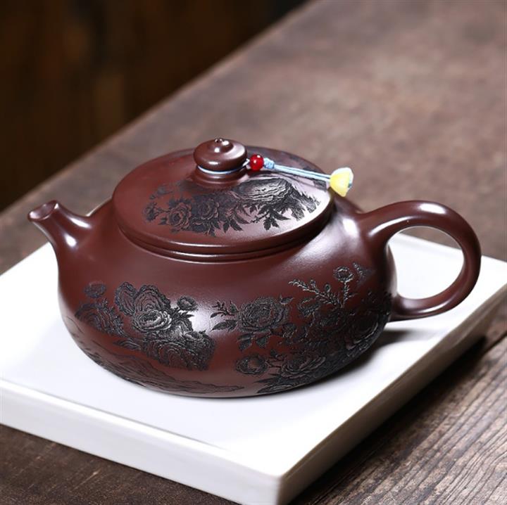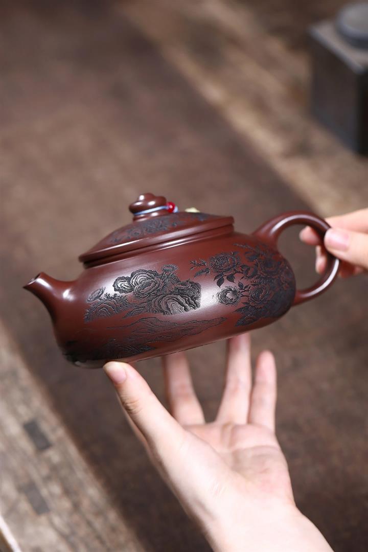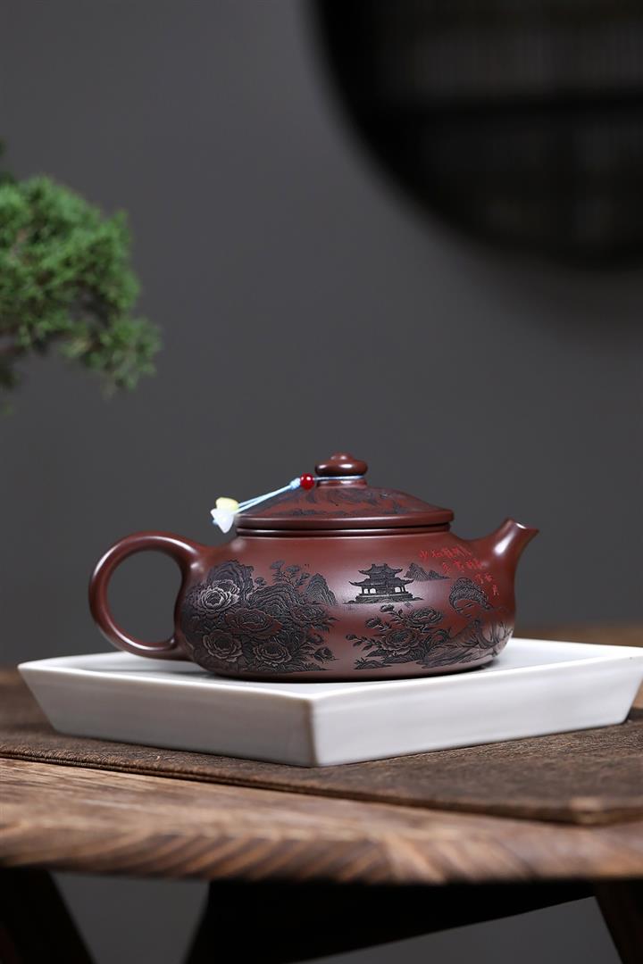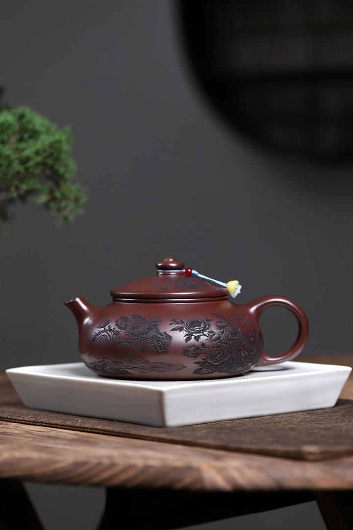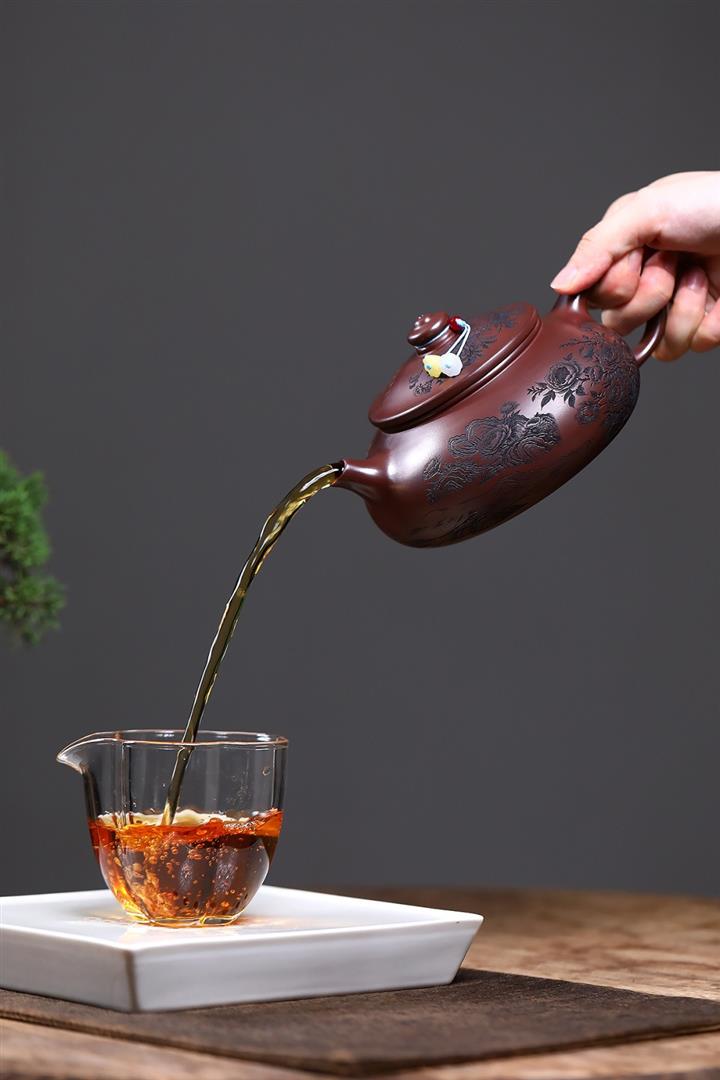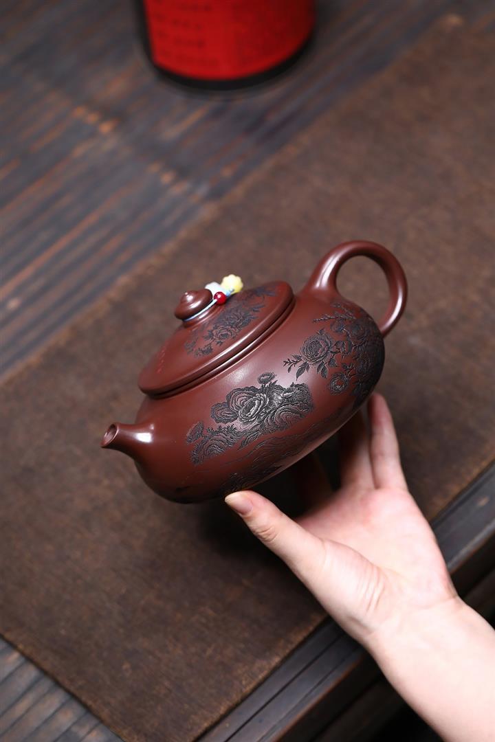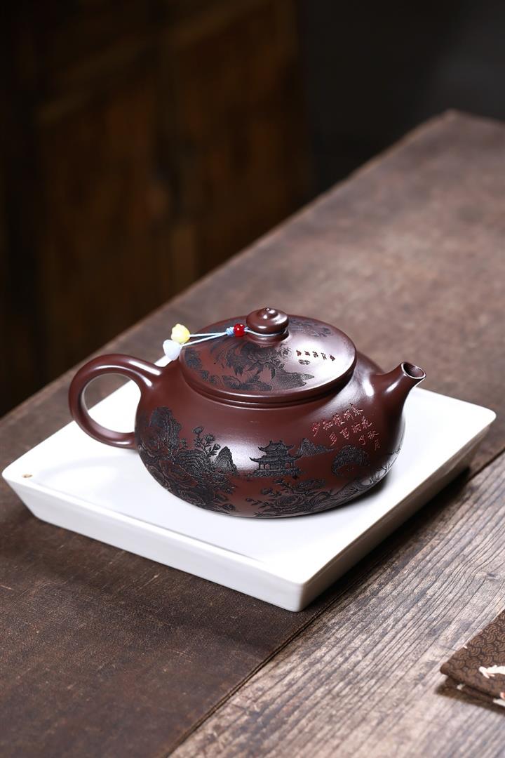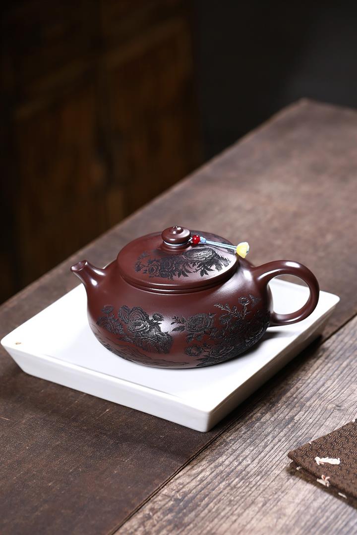 【泥料特點】砂土氣重,似淳實農民,日久使用,漸露鋒芒,養成變化,溫潤莊重。紫砂是壹種雙重氣孔結構的多孔性材質,氣孔微細,密度高。用紫砂壺沏茶,不失原味,且香不渙散,得茶之真香真味。紫砂使用越久,壺身色澤越發光亮照人,氣韻溫雅。紫砂壺長久使用器身會因撫摸擦拭,變得越發溫潤光澤。