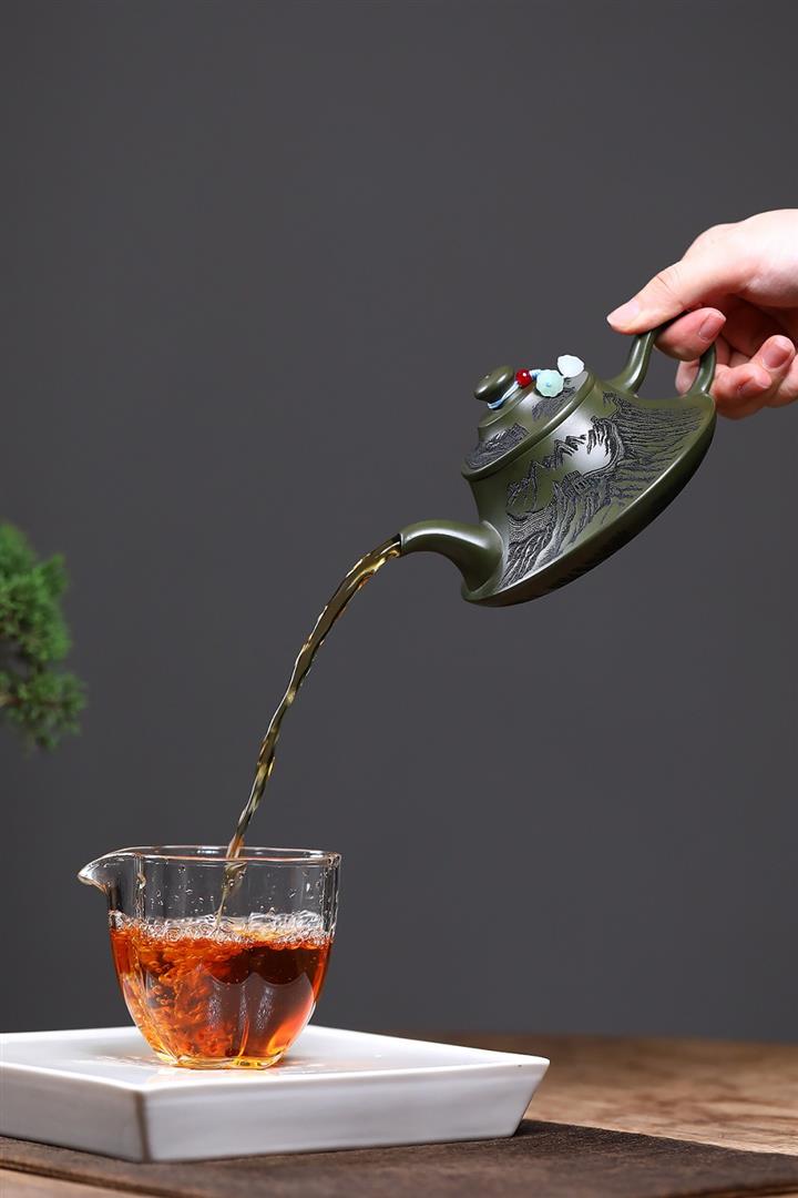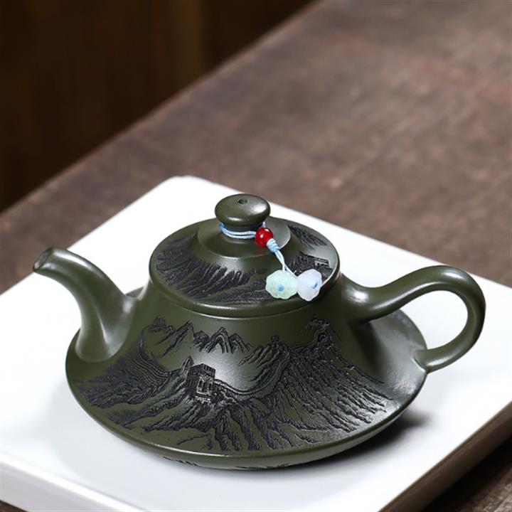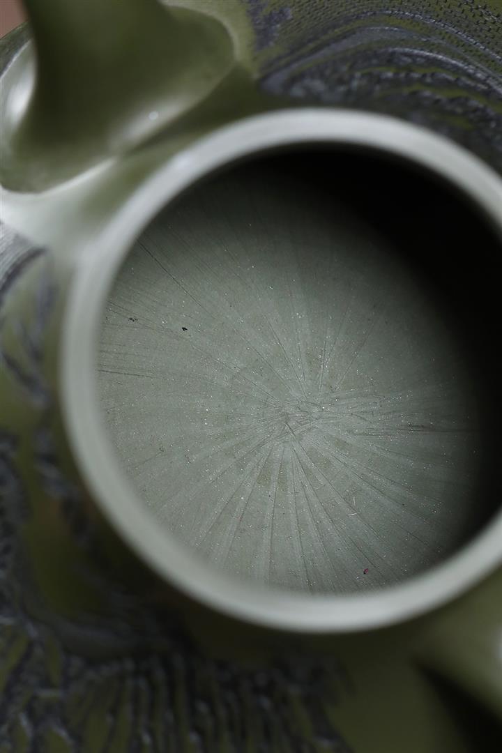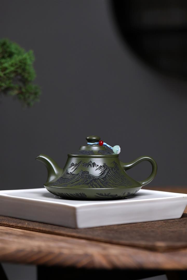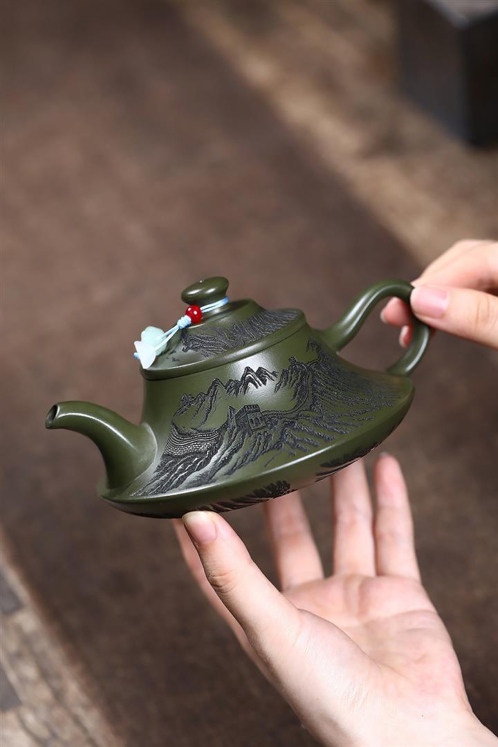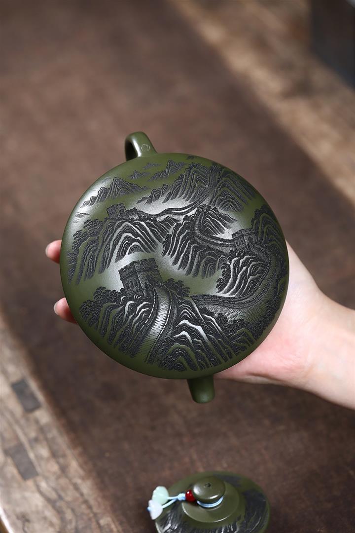 400cc原礦綠泥滿刻江山如畫壺POT7982