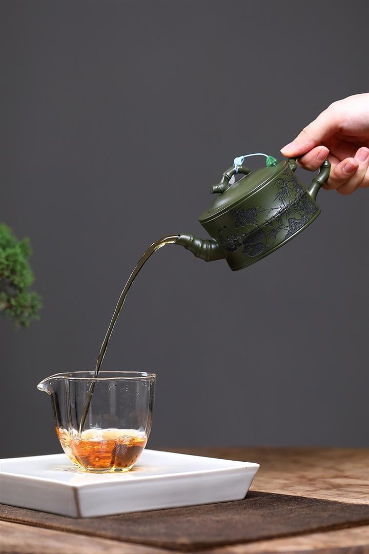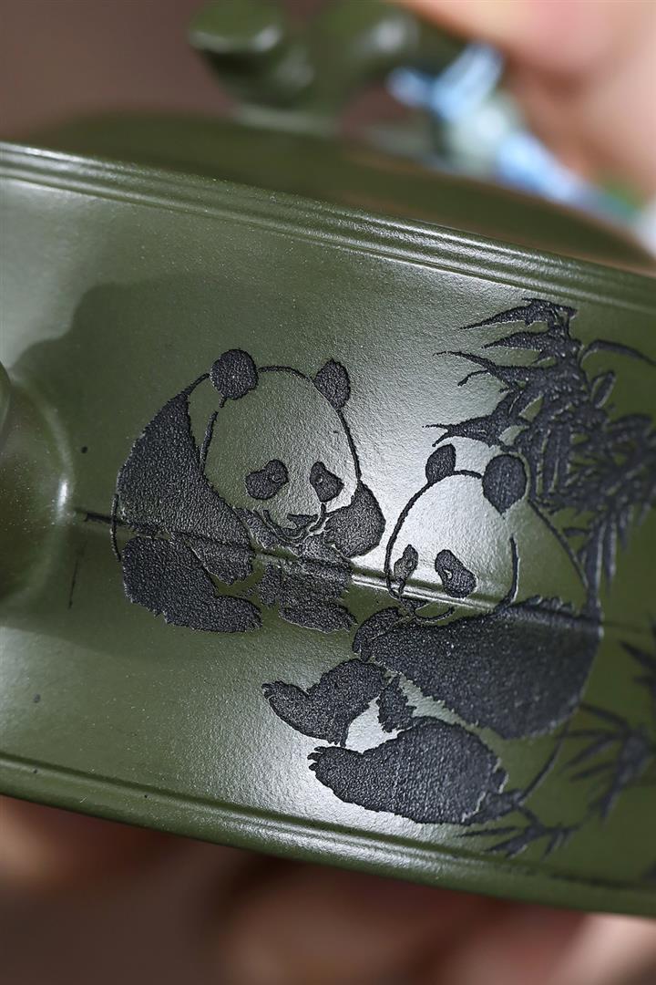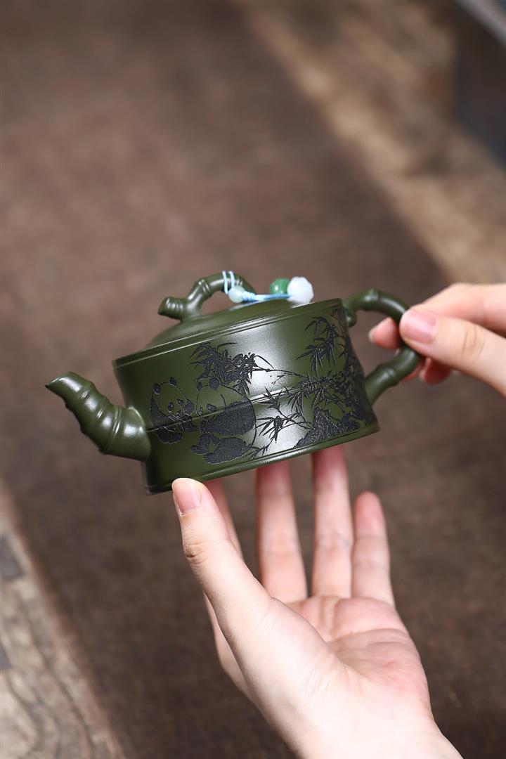 400cc原礦綠泥滿刻江山如畫壺POT7982
