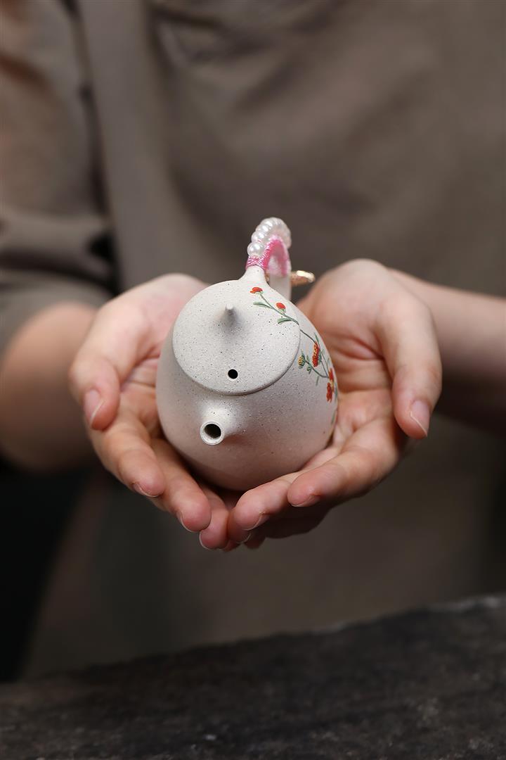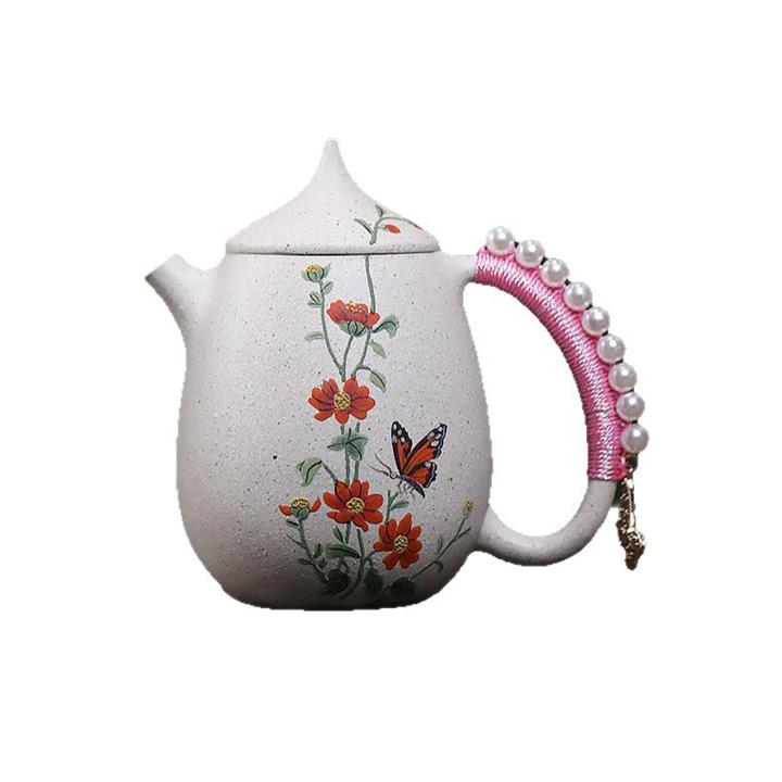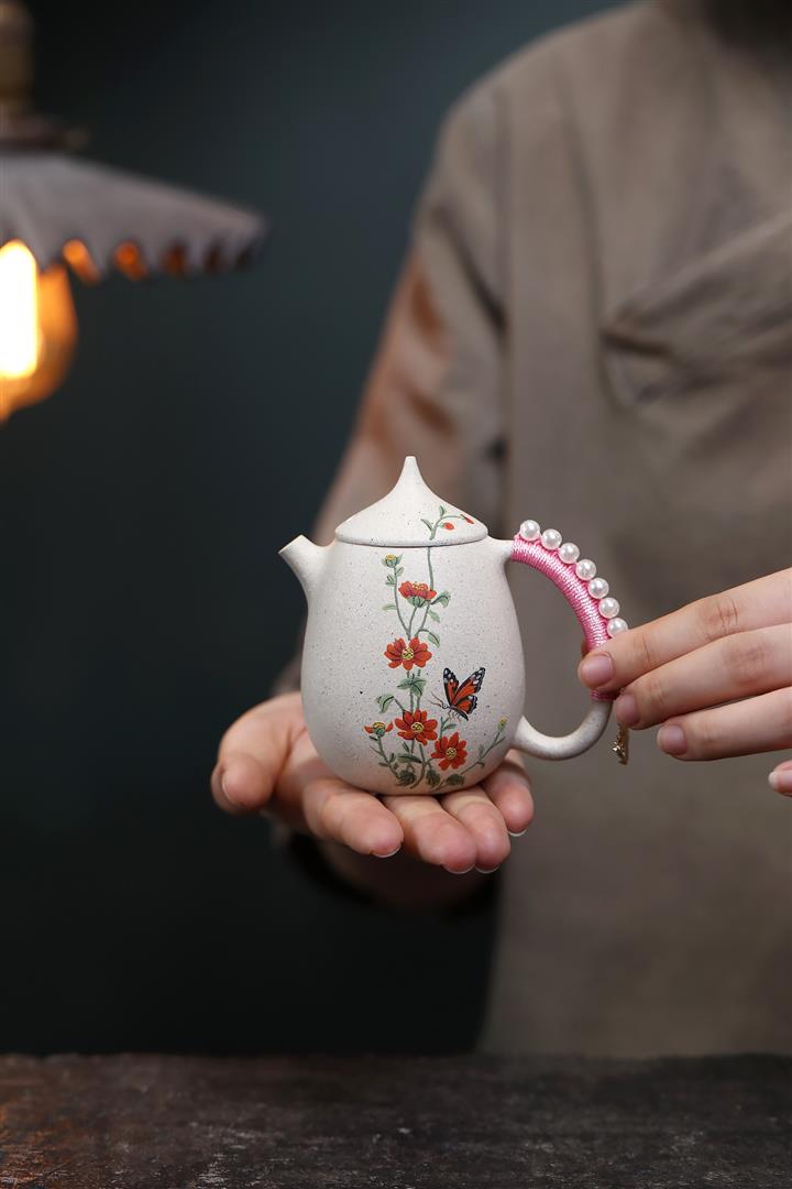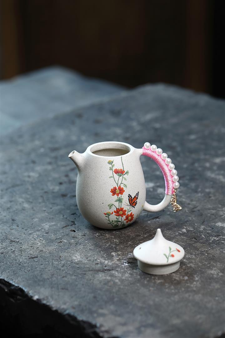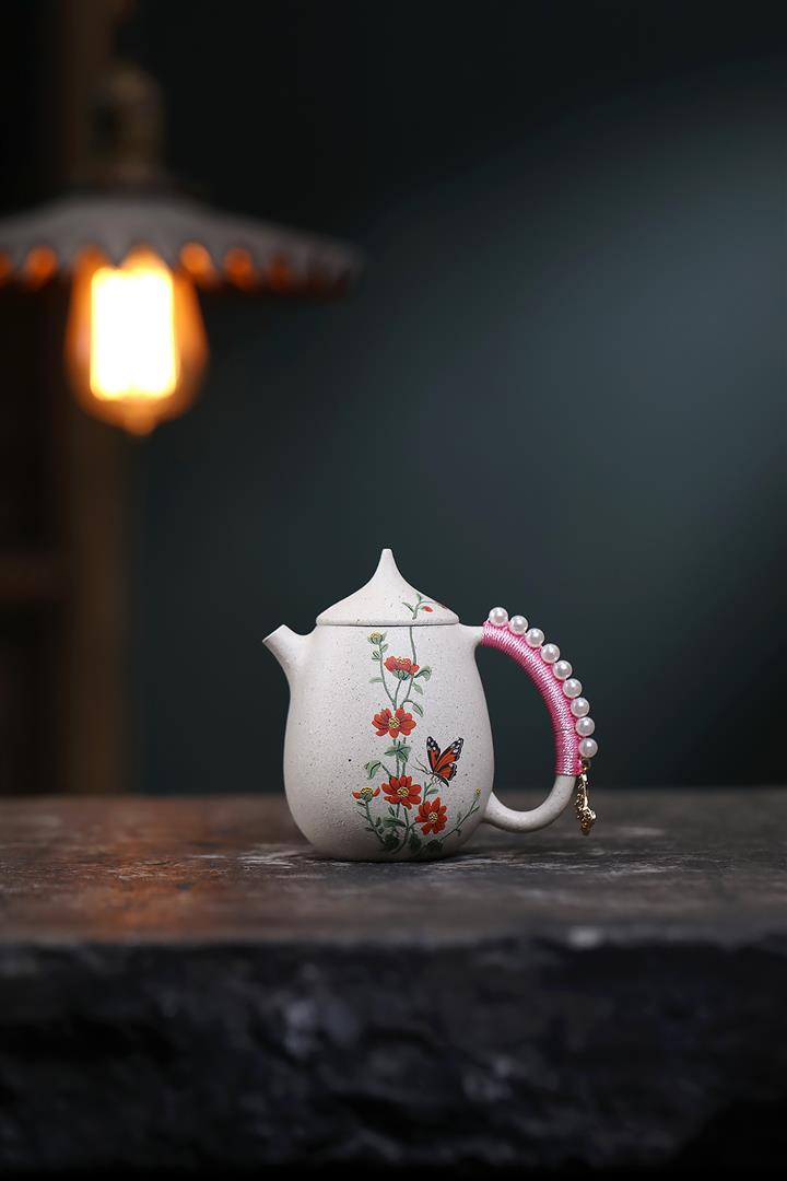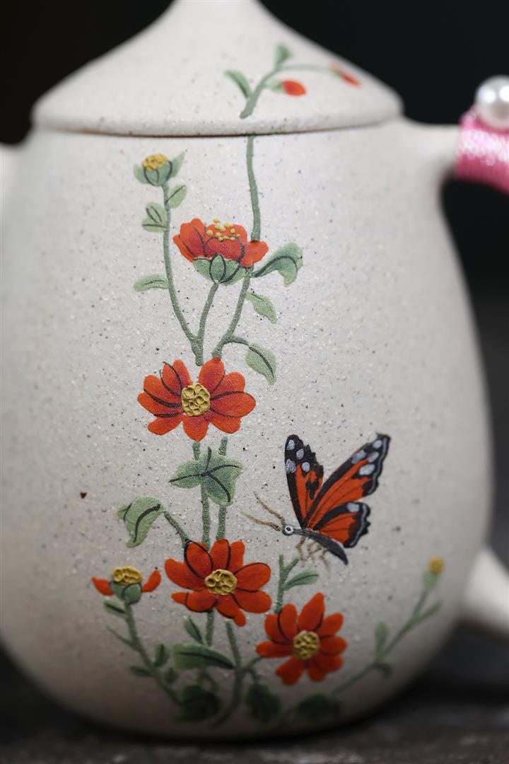 150cc原礦白玉段高龍蛋蝶戀花女士茶壺POT7988