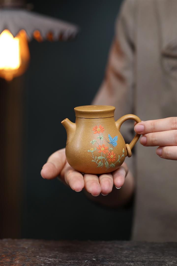 160cc原礦黃金段泥蝶戀花女士茶壺POT7989