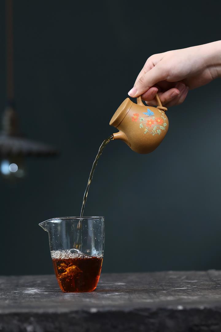 【泥料特點】砂土氣重,似淳實農民,日久使用,漸露鋒芒,養成變化,溫潤莊重。紫砂是壹種雙重氣孔結構的多孔性材質,氣孔微細,密度高。用紫砂壺沏茶,不失原味,且香不渙散,得茶之真香真味。紫砂使用越久,壺身色澤越發光亮照人,氣韻溫雅。紫砂壺長久使用器身會因撫摸擦拭,變得越發溫潤光澤。
