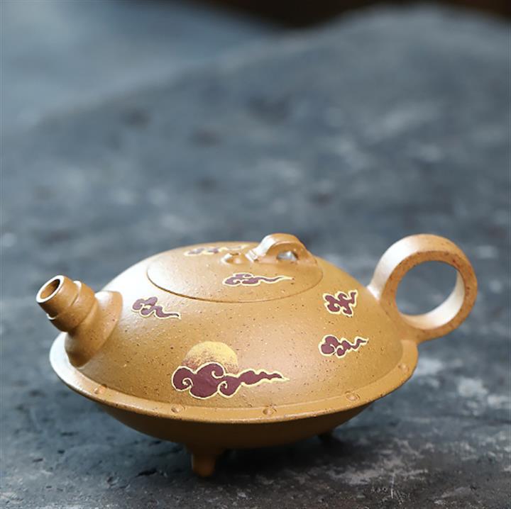 130cc原礦黃金段泥飛碟祥雲壺茶POT7995