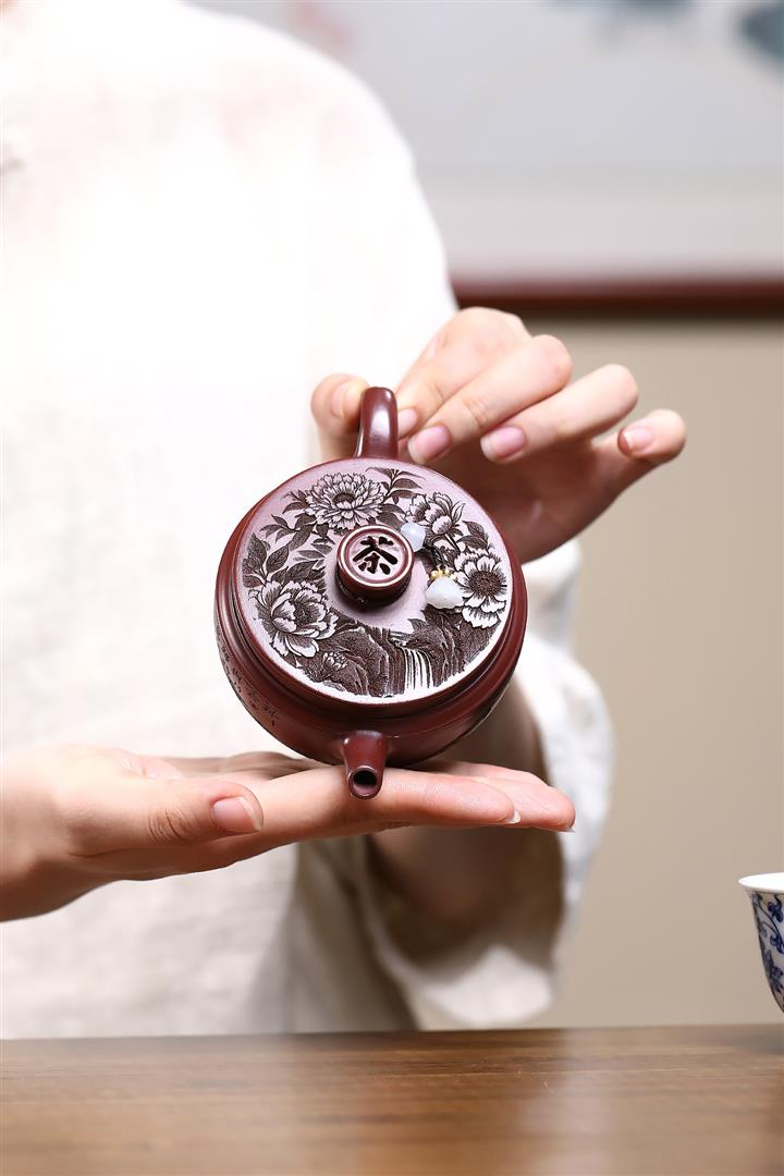 150cc原礦龍血砂花開富貴茶壺POT7990