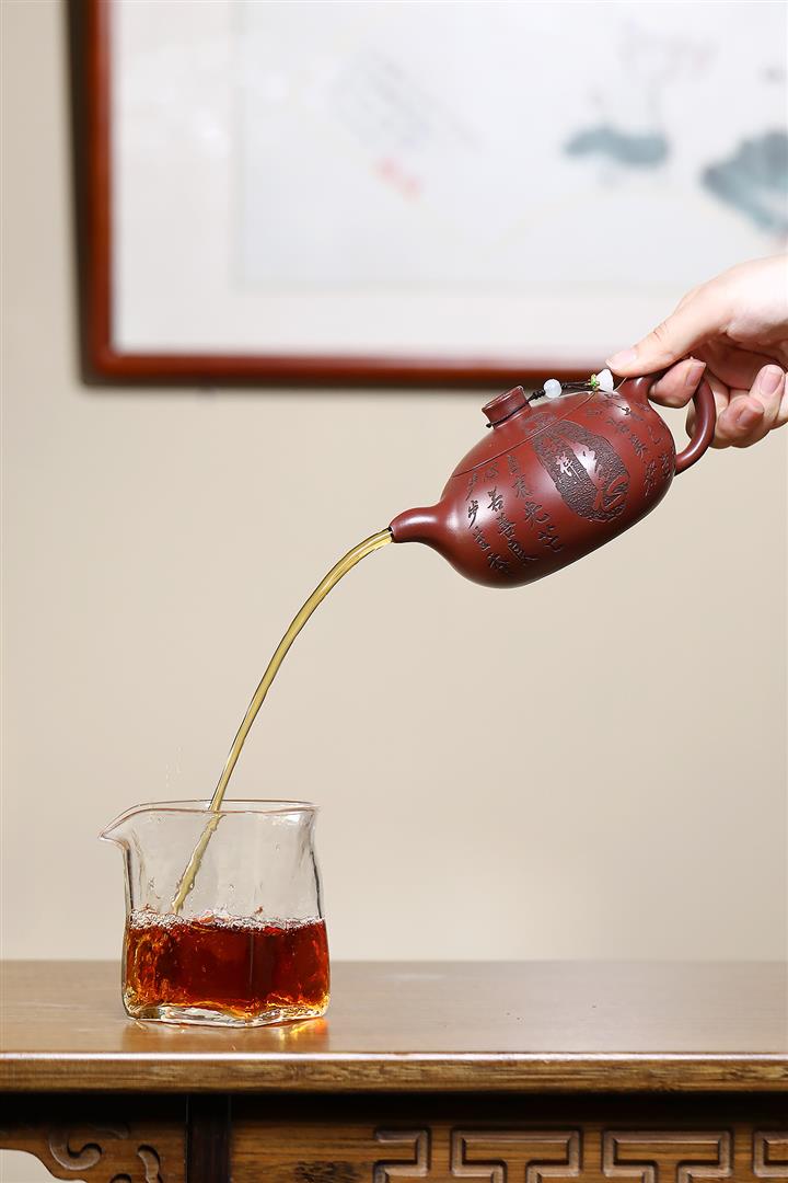【泥料特點】砂土氣重,似淳實農民,日久使用,漸露鋒芒,養成變化,溫潤莊重。紫砂是壹種雙重氣孔結構的多孔性材質,氣孔微細,密度高。用紫砂壺沏茶,不失原味,且香不渙散,得茶之真香真味。紫砂使用越久,壺身色澤越發光亮照人,氣韻溫雅。紫砂壺長久使用器身會因撫摸擦拭,變得越發溫潤光澤。