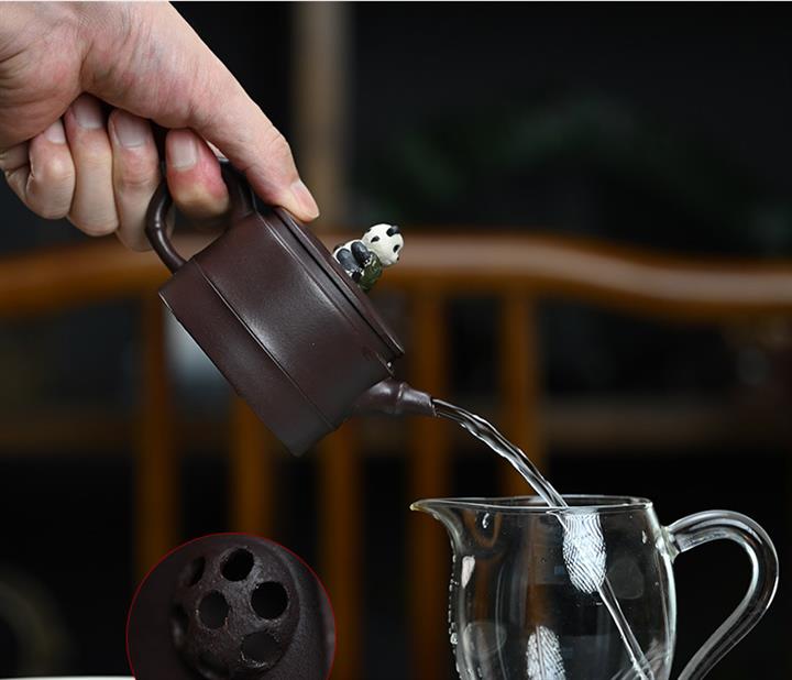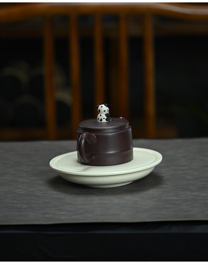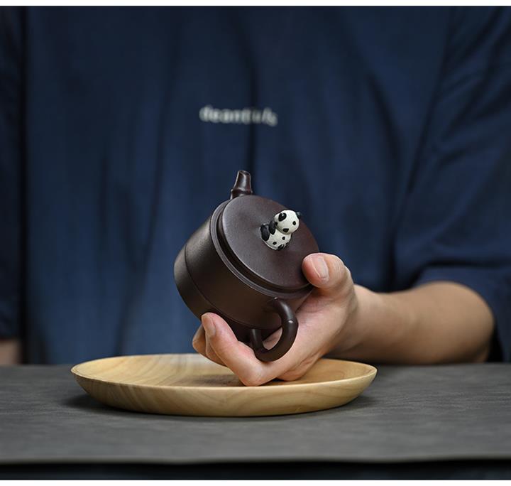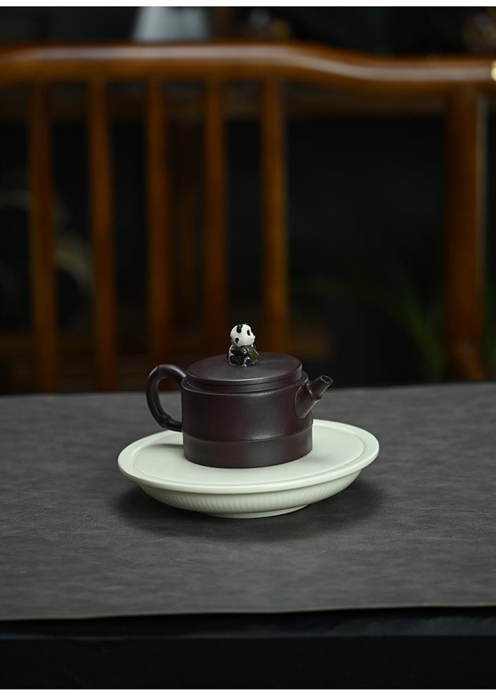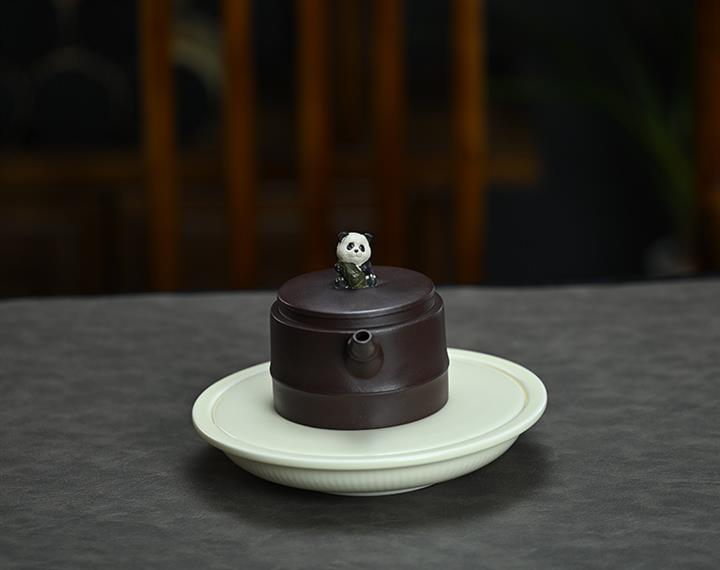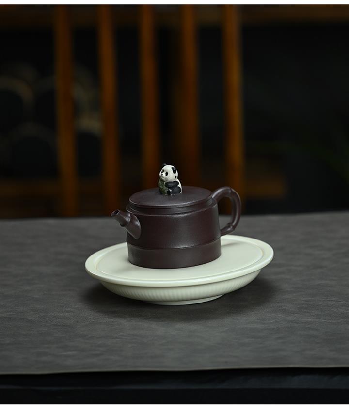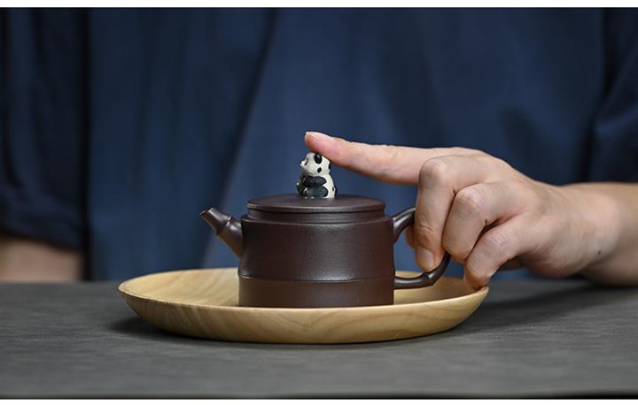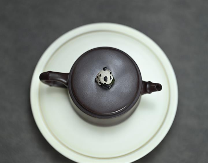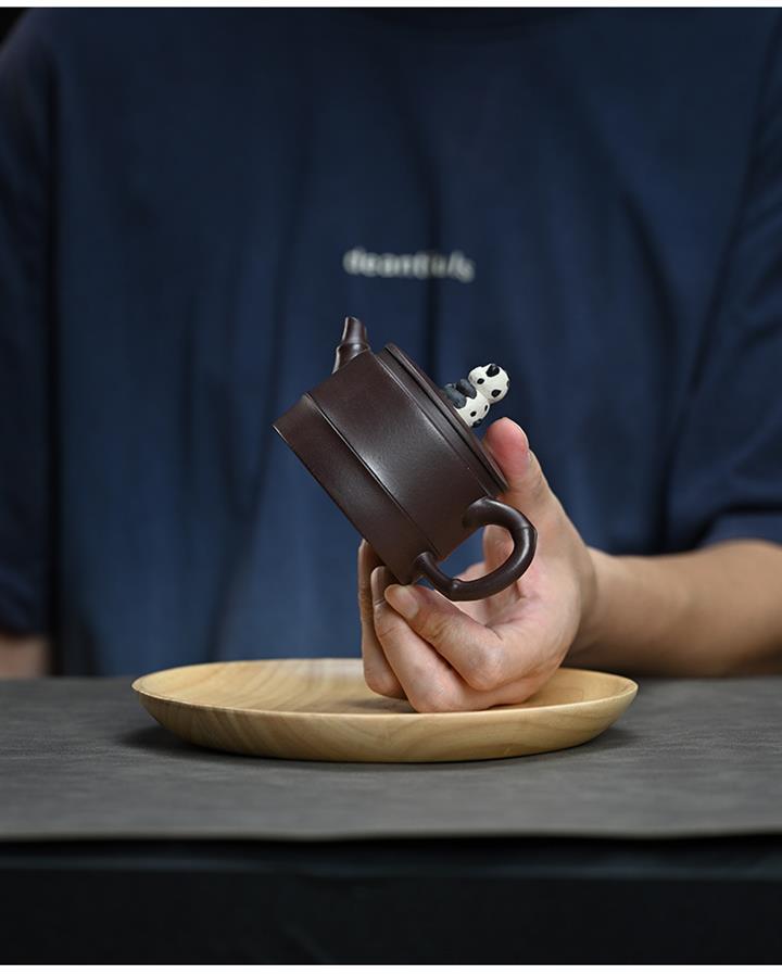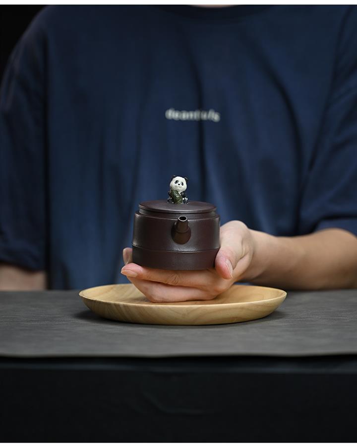 210cc原礦紫泥熊貓竹段國風光素茶壺POT8000