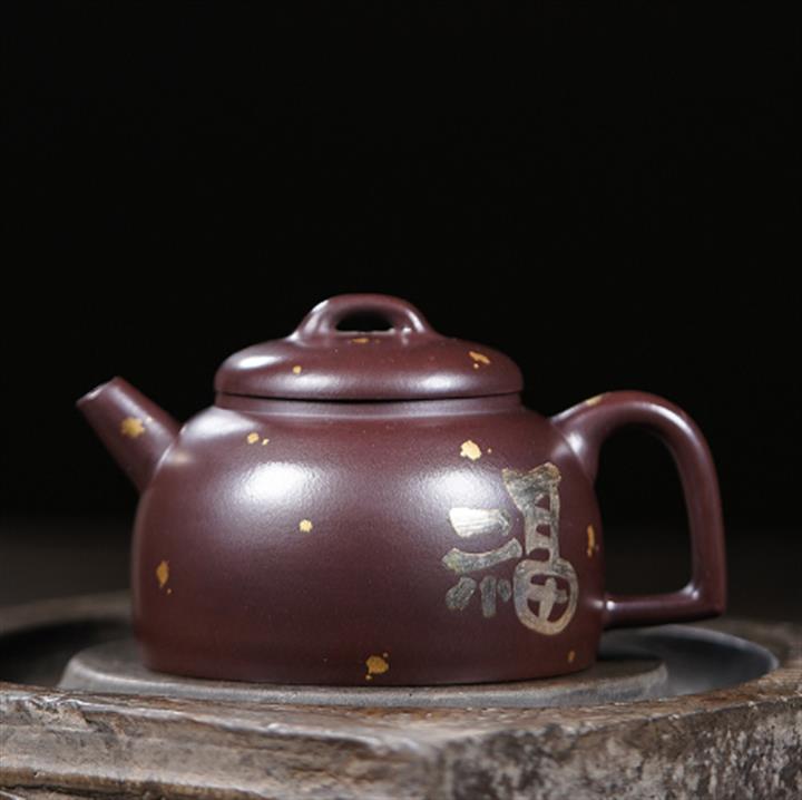 150cc原礦紫泥金銀錯灑金福緣茶壺POT8009