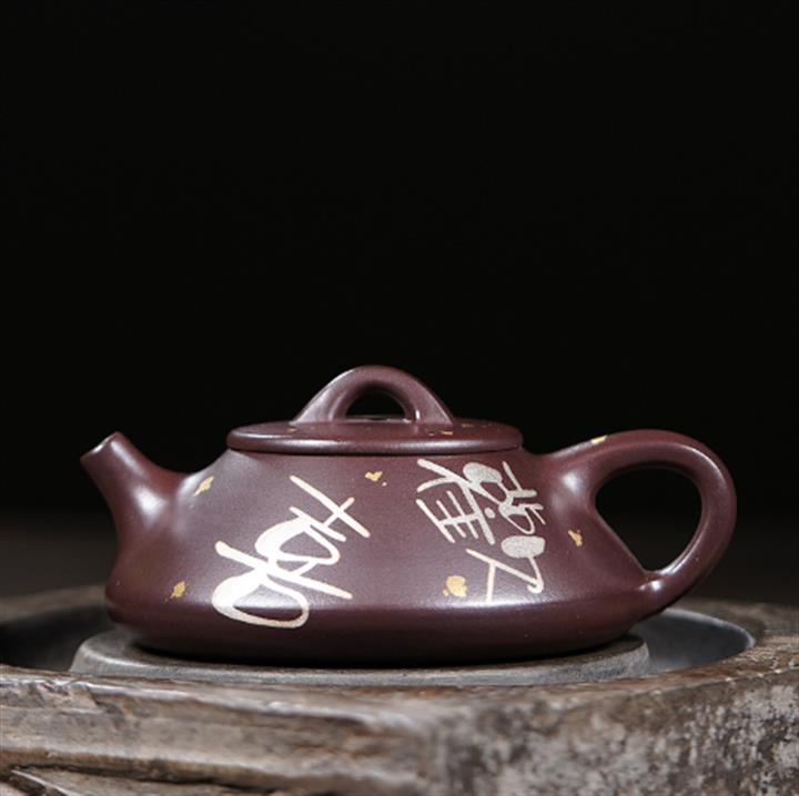 150cc原礦紫泥金銀錯灑金歡喜石瓢茶壺POT8010