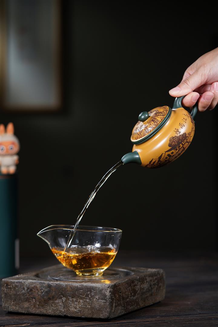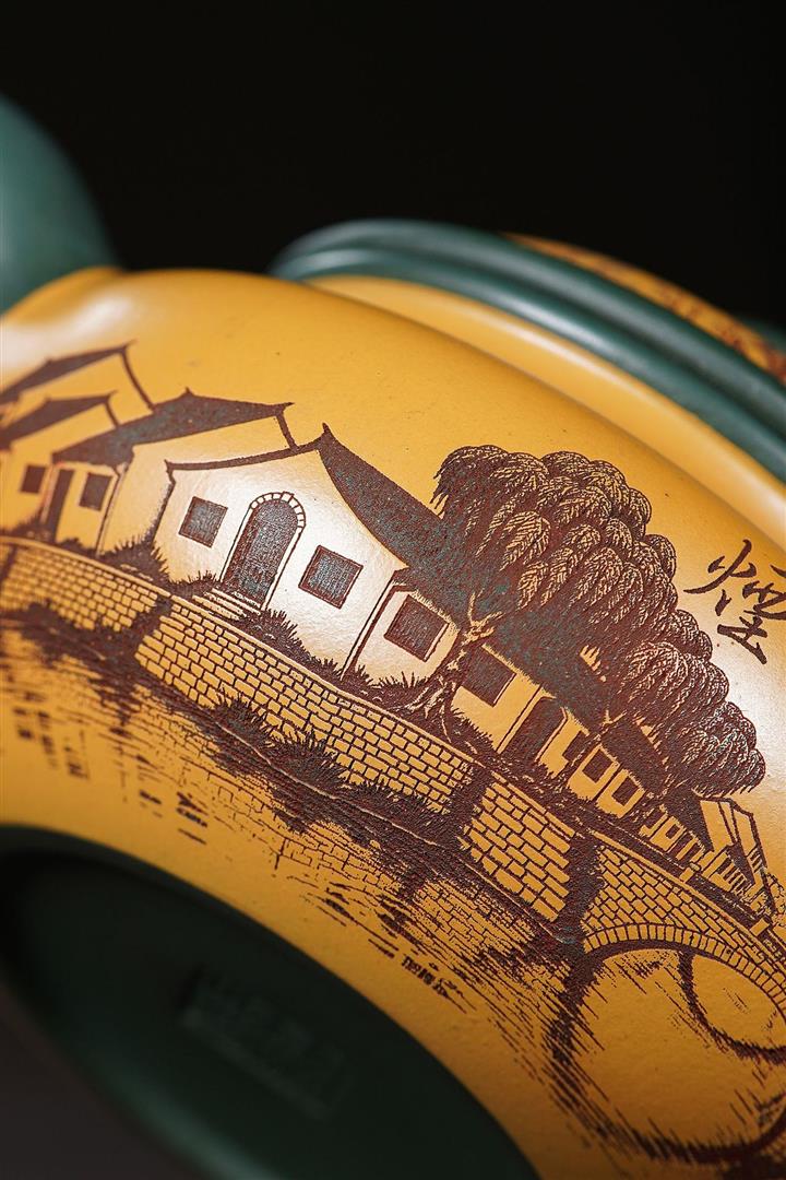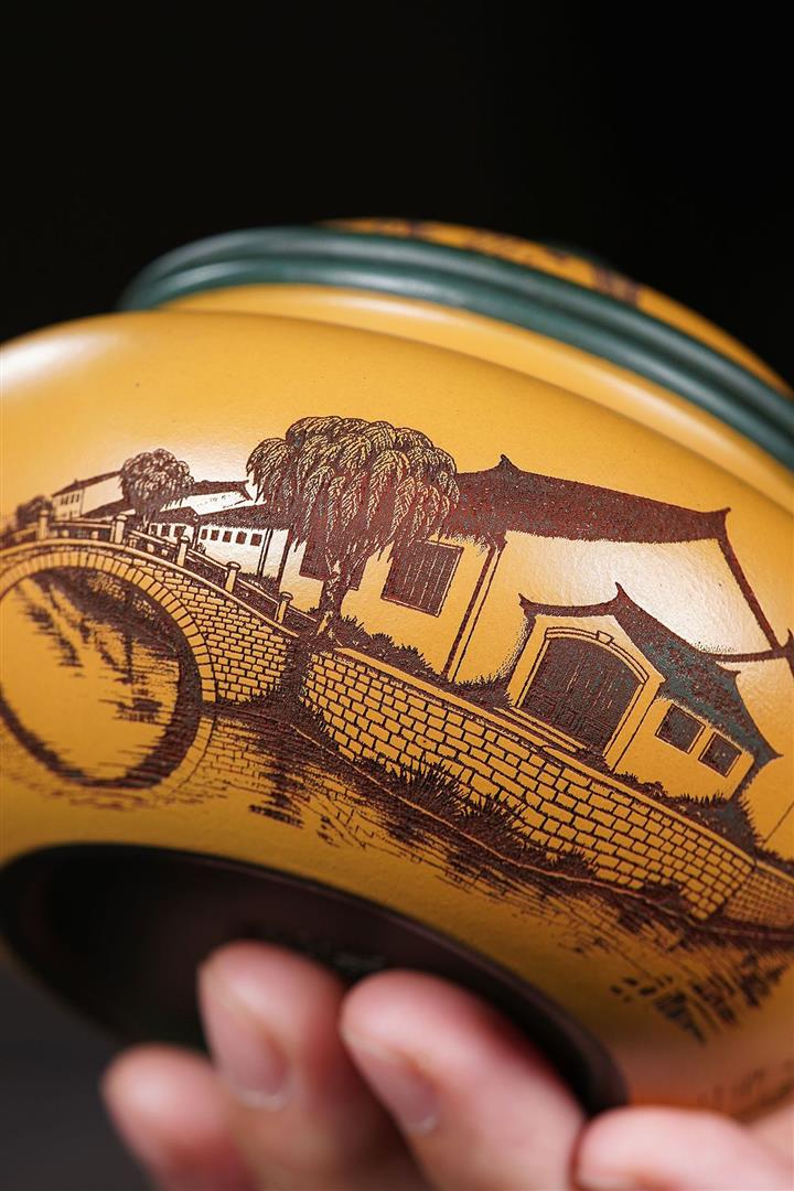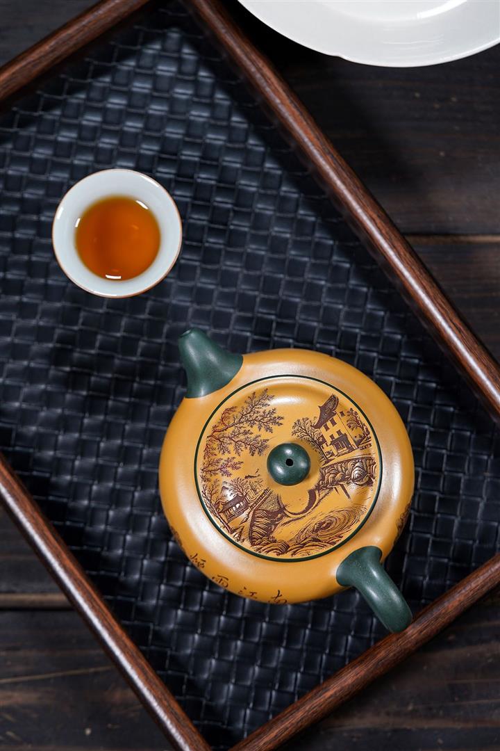 【泥料特點】砂土氣重,似淳實農民,日久使用,漸露鋒芒,養成變化,溫潤莊重。紫砂是壹種雙重氣孔結構的多孔性材質,氣孔微細,密度高。用紫砂壺沏茶,不失原味,且香不渙散,得茶之真香真味。紫砂使用越久,壺身色澤越發光亮照人,氣韻溫雅。紫砂壺長久使用器身會因撫摸擦拭,變得越發溫潤光澤。