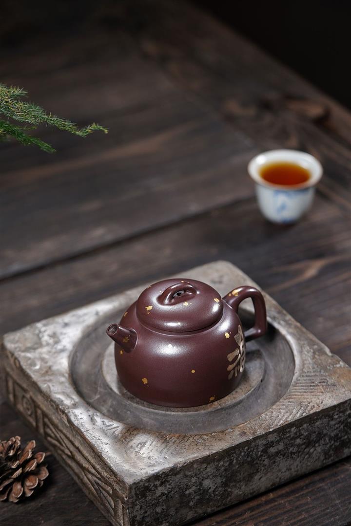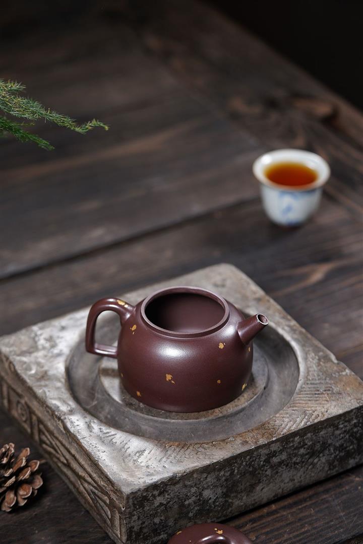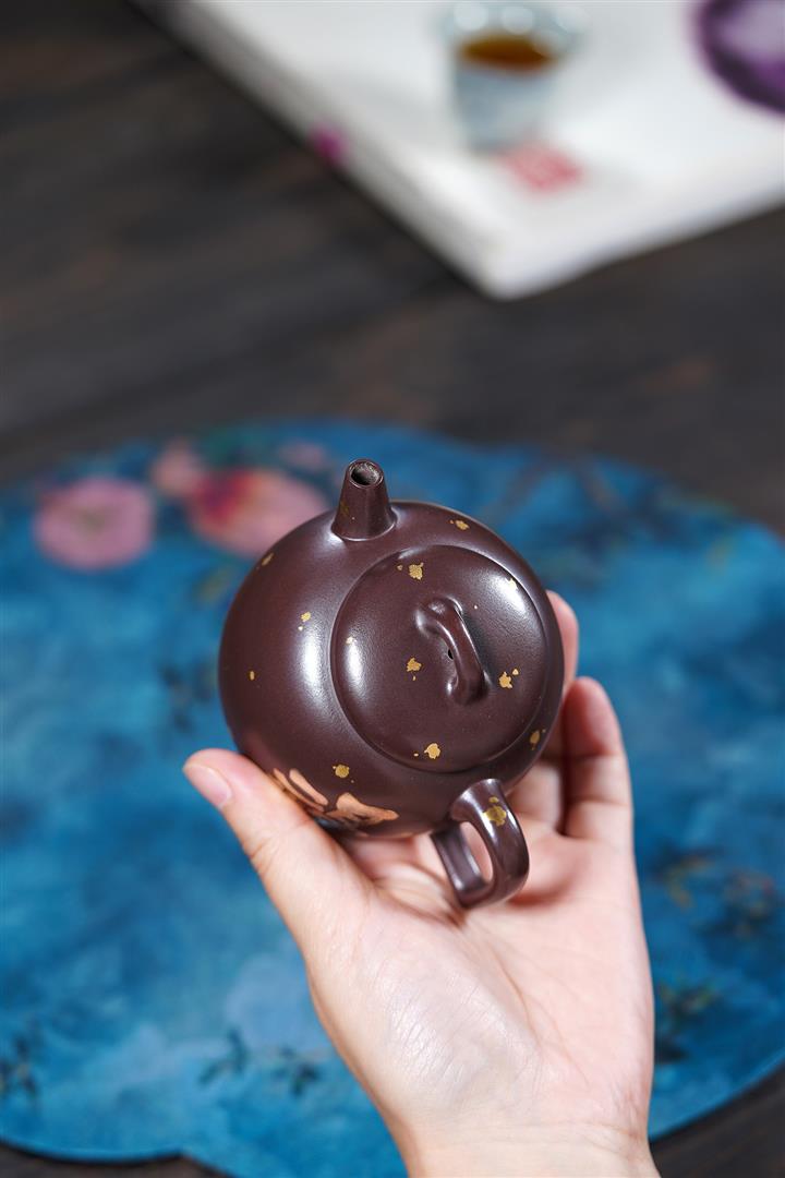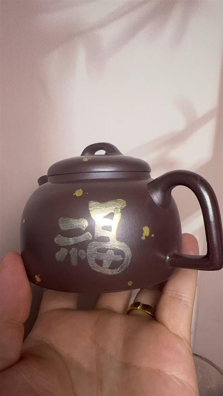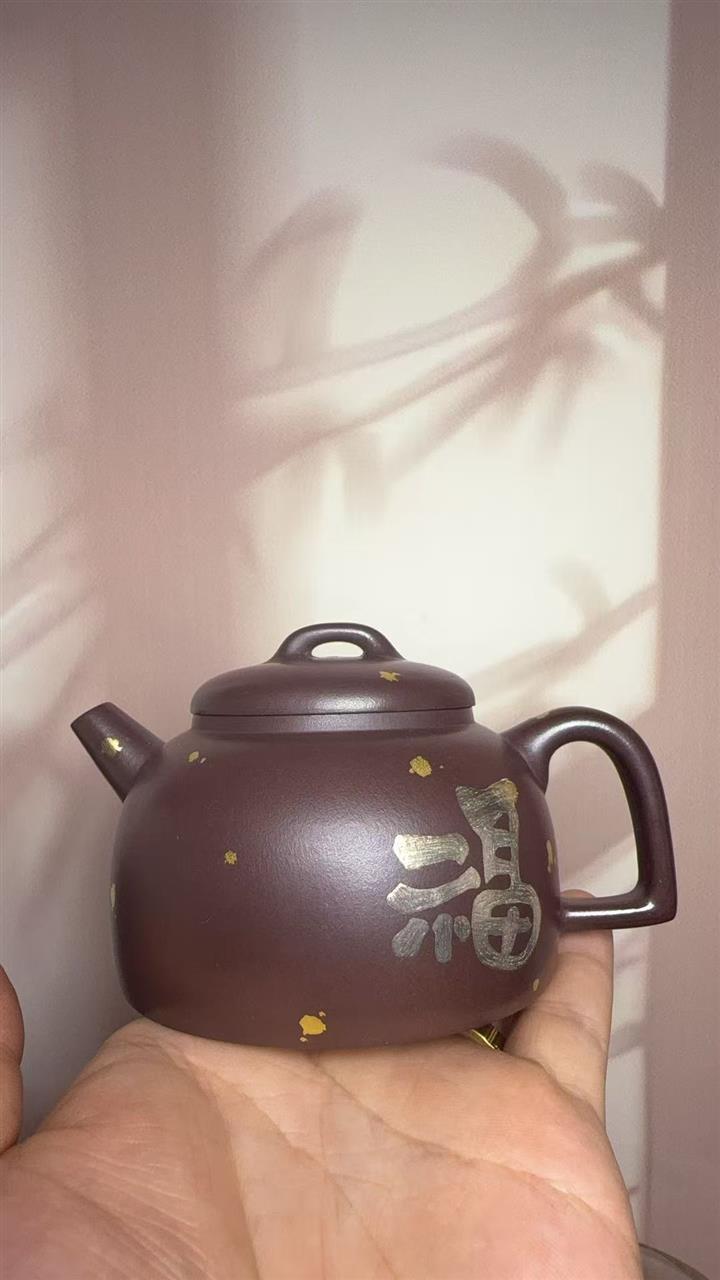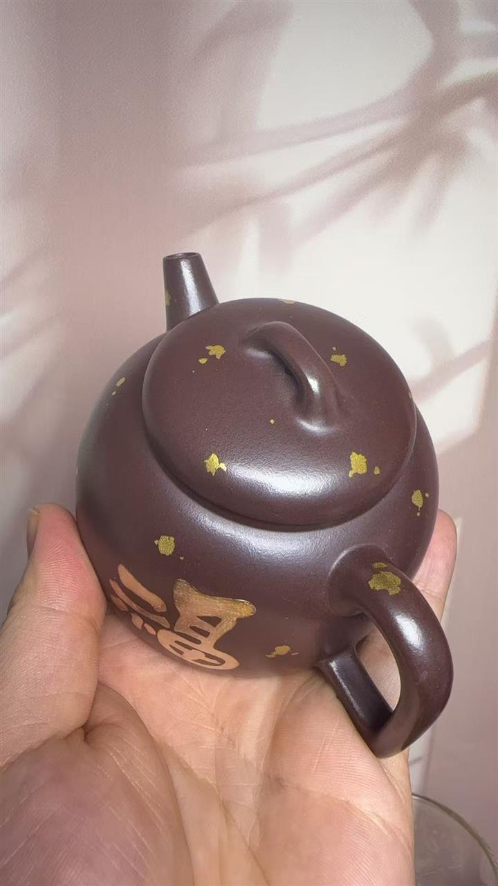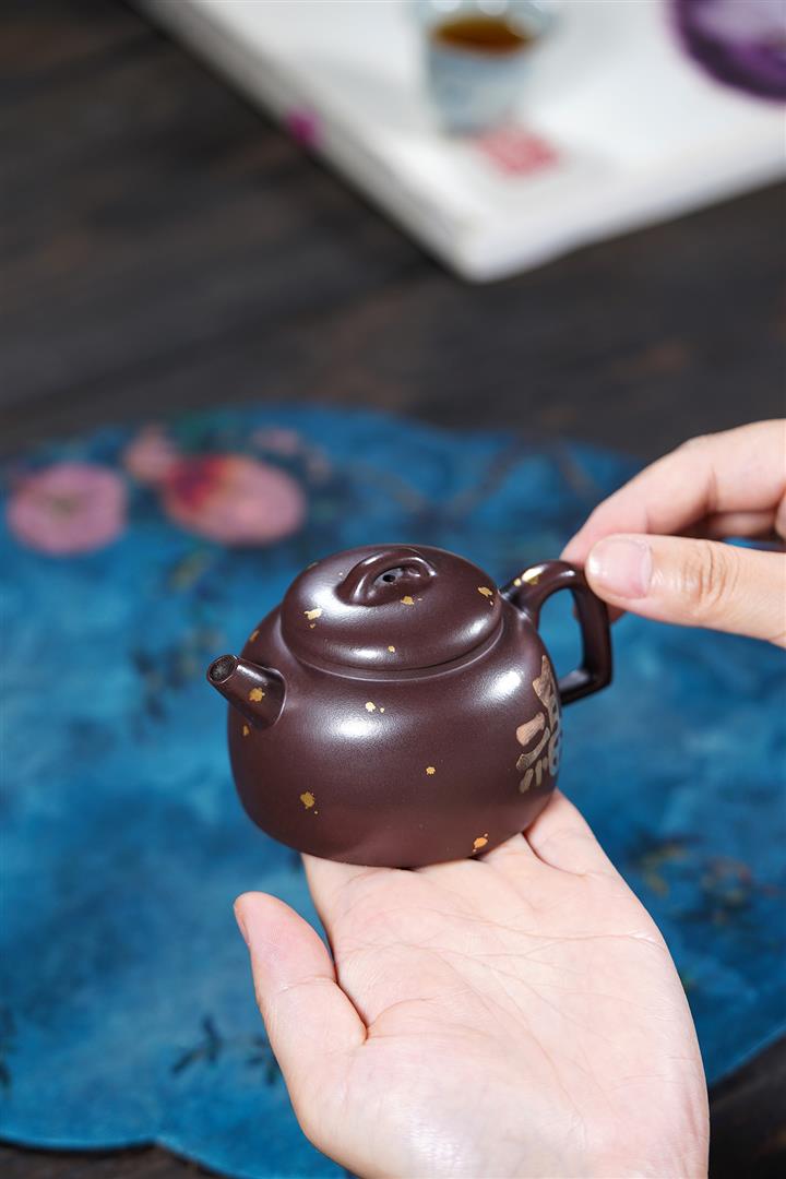 150cc原礦紫泥金銀錯灑金福緣茶壺POT8009