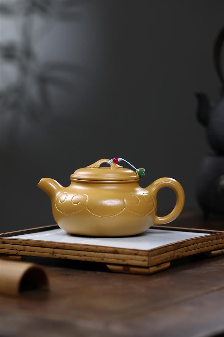 150cc原礦石黃泥幽蘭扁柿茶壺POT8031