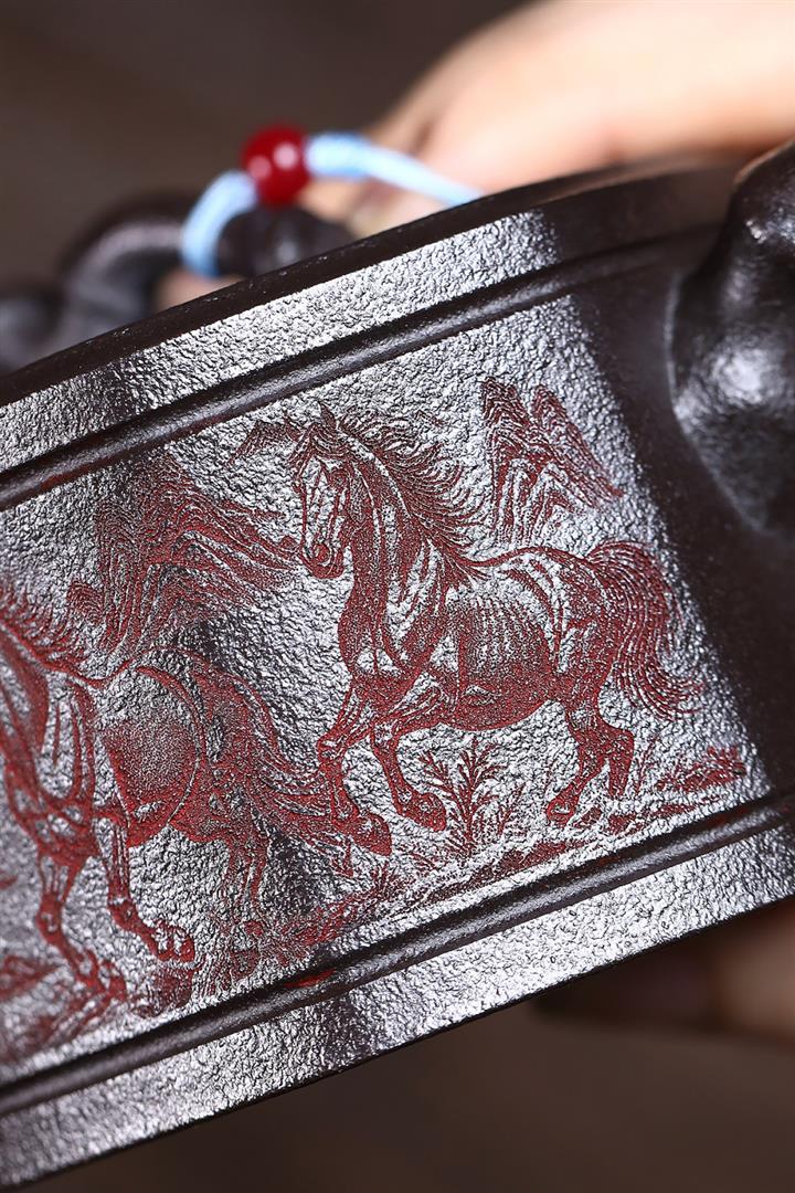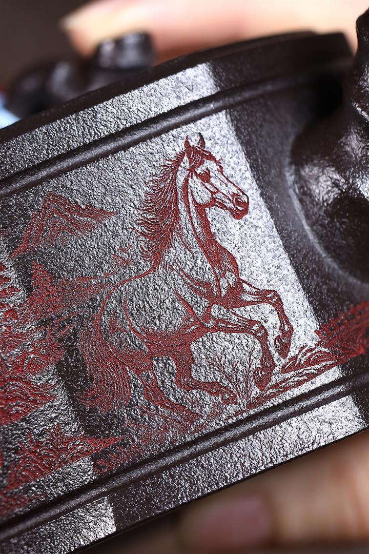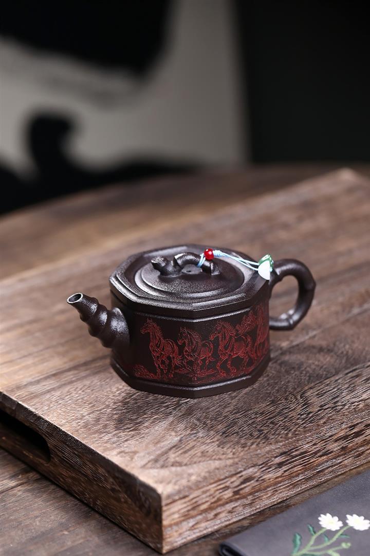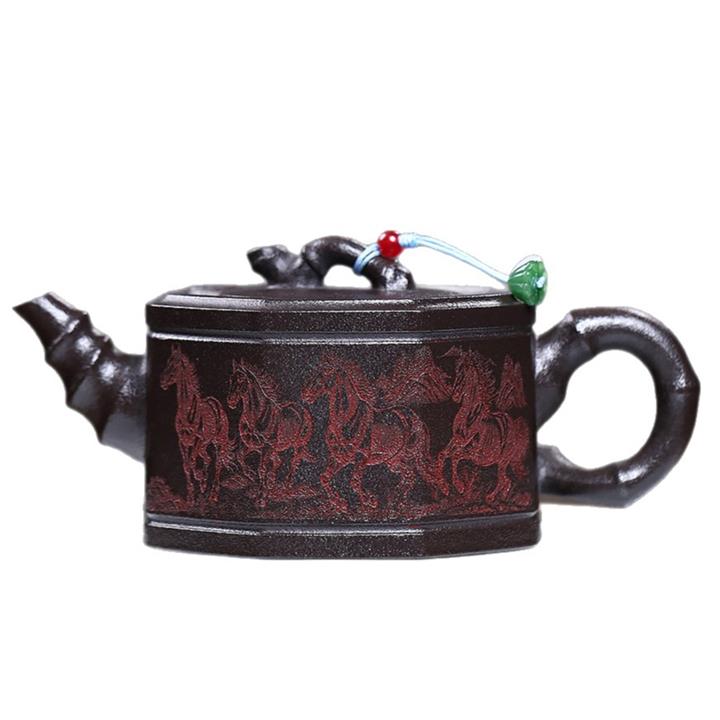 300cc原礦石黃泥山河駿馬竹段茶壺POT8028