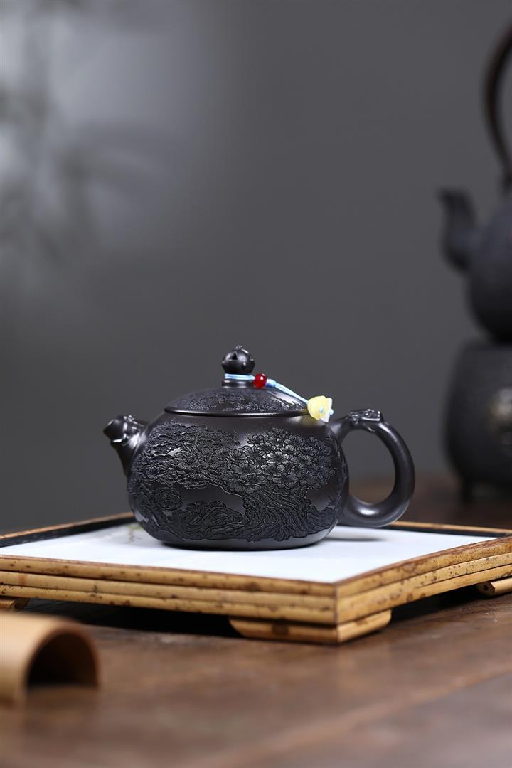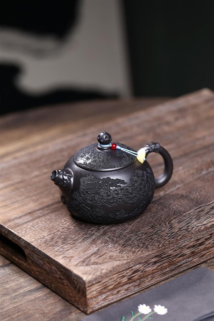 360cc原礦龍血砂雙色風竹琴韻茶壺POT8046
