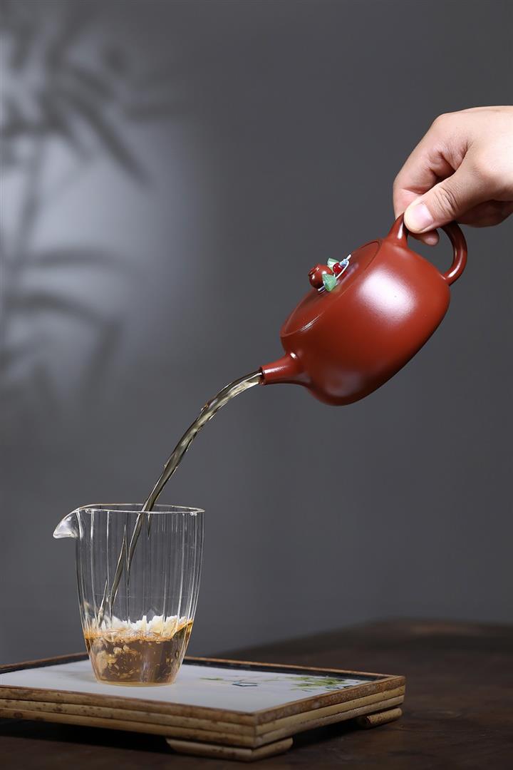 【泥料特點】砂土氣重,似淳實農民,日久使用,漸露鋒芒,養成變化,溫潤莊重。紫砂是壹種雙重氣孔結構的多孔性材質,氣孔微細,密度高。用紫砂壺沏茶,不失原味,且香不渙散,得茶之真香真味。紫砂使用越久,壺身色澤越發光亮照人,氣韻溫雅。紫砂壺長久使用器身會因撫摸擦拭,變得越發溫潤光澤。