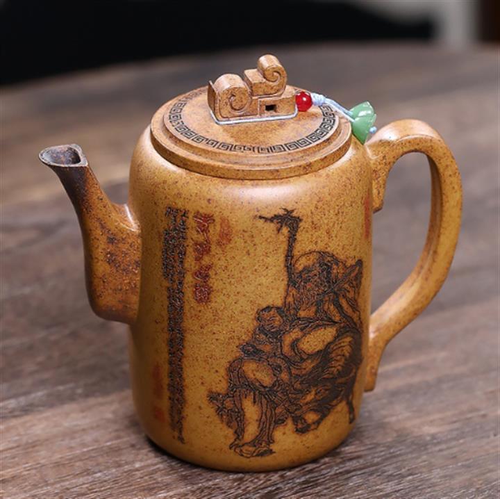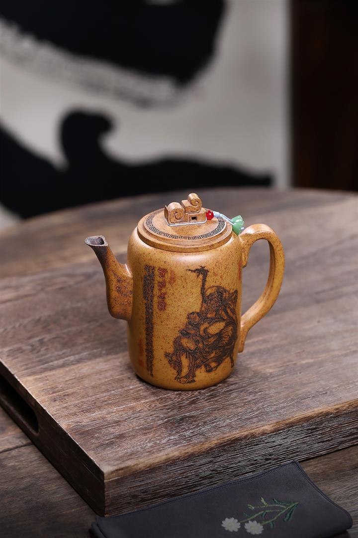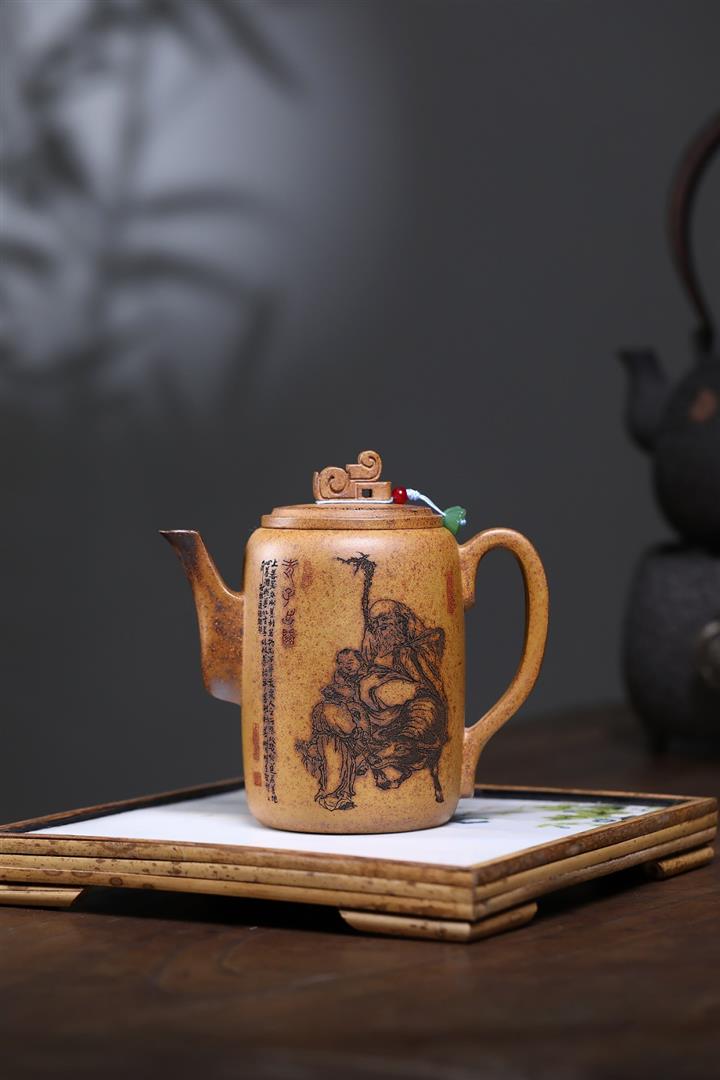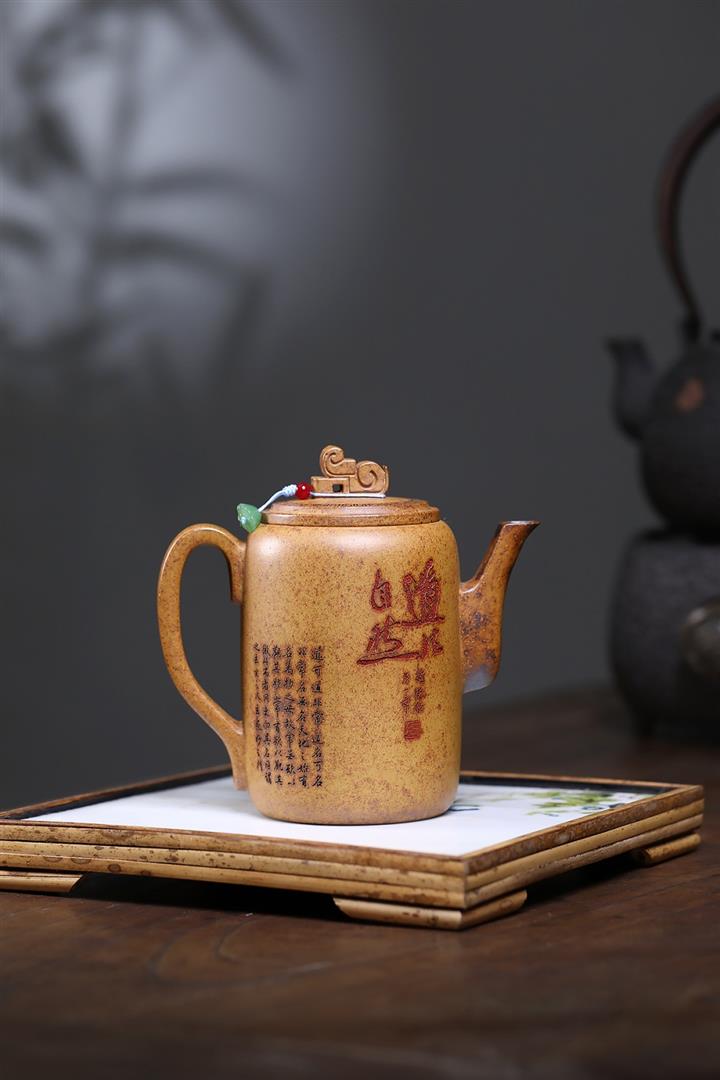 360cc原礦龍血砂雙色風竹琴韻茶壺POT8046