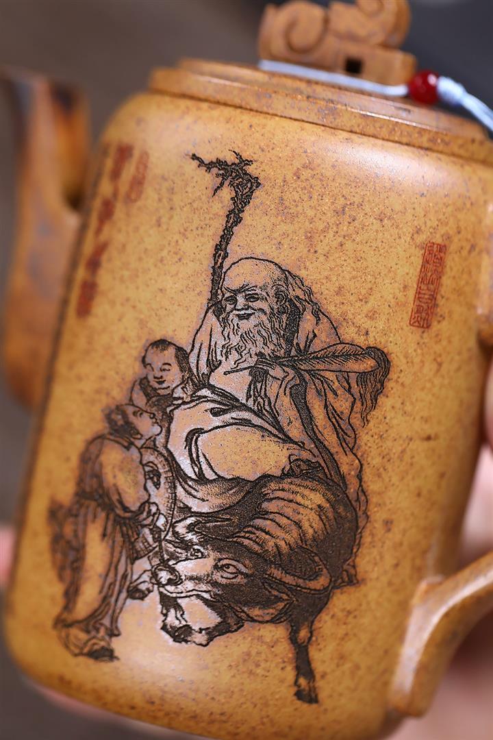 220cc原礦大紅袍雙色詩情畫意茶壺POT8051