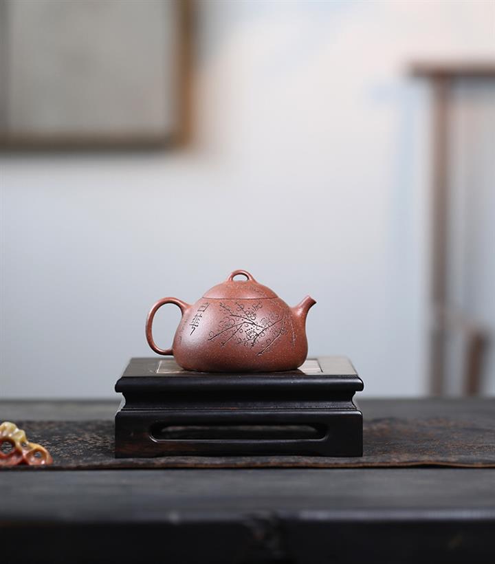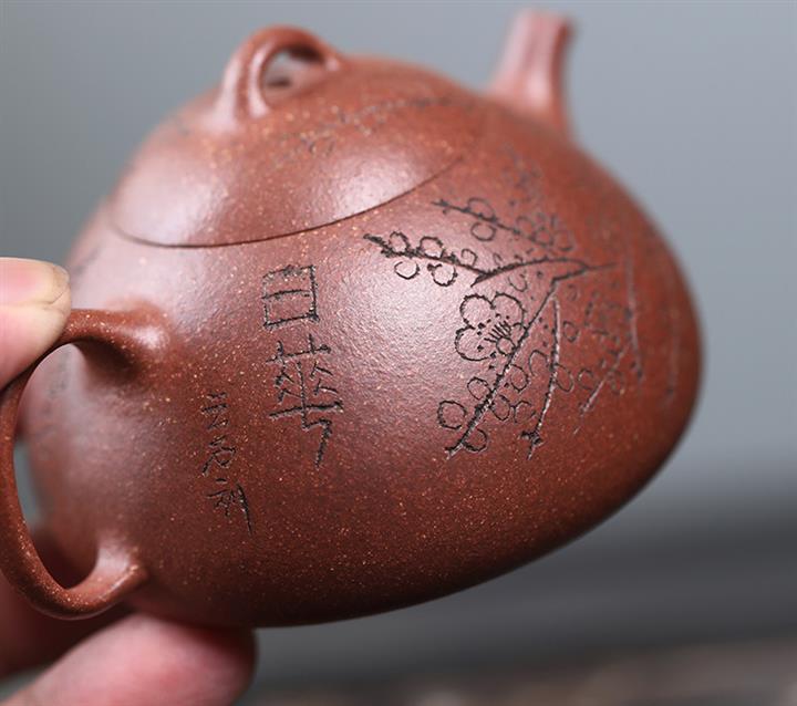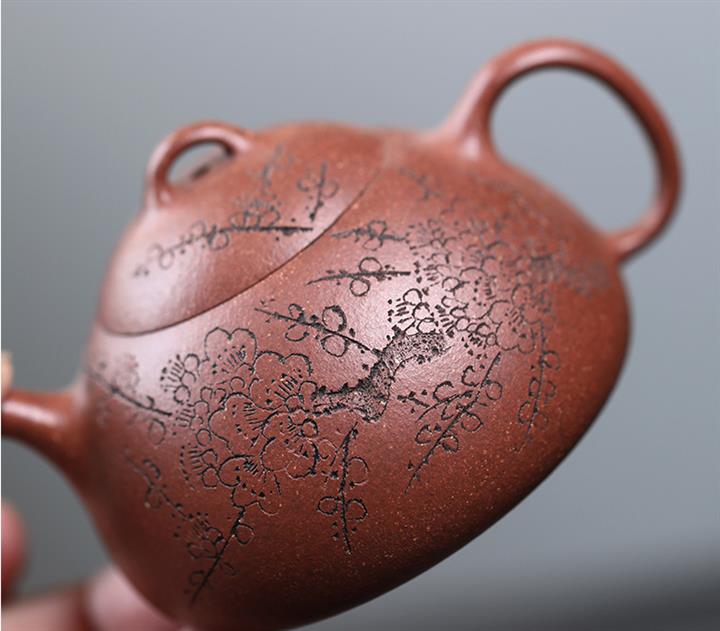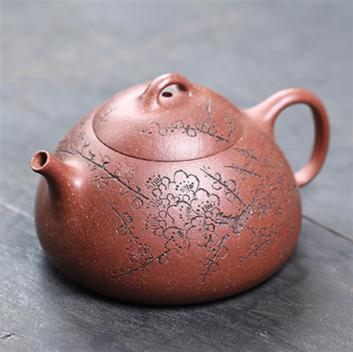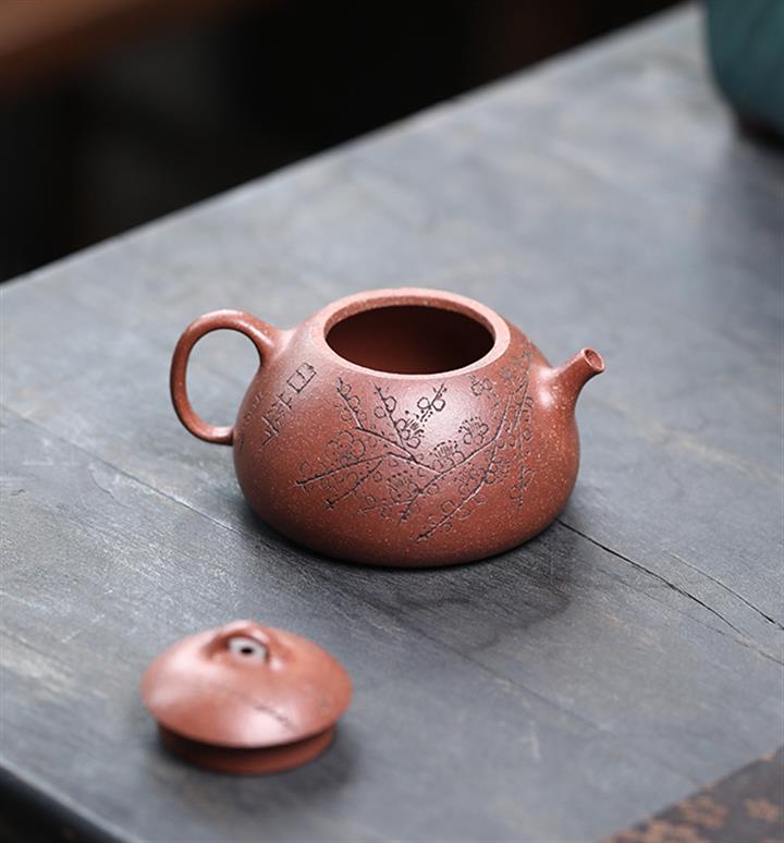 200cc原礦紫泥刻繪梅香漢瓦茶壺POT8049