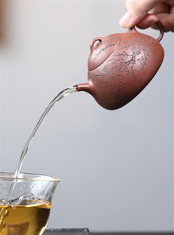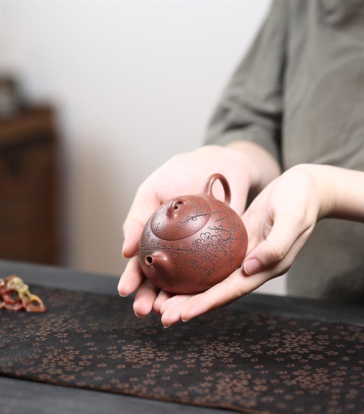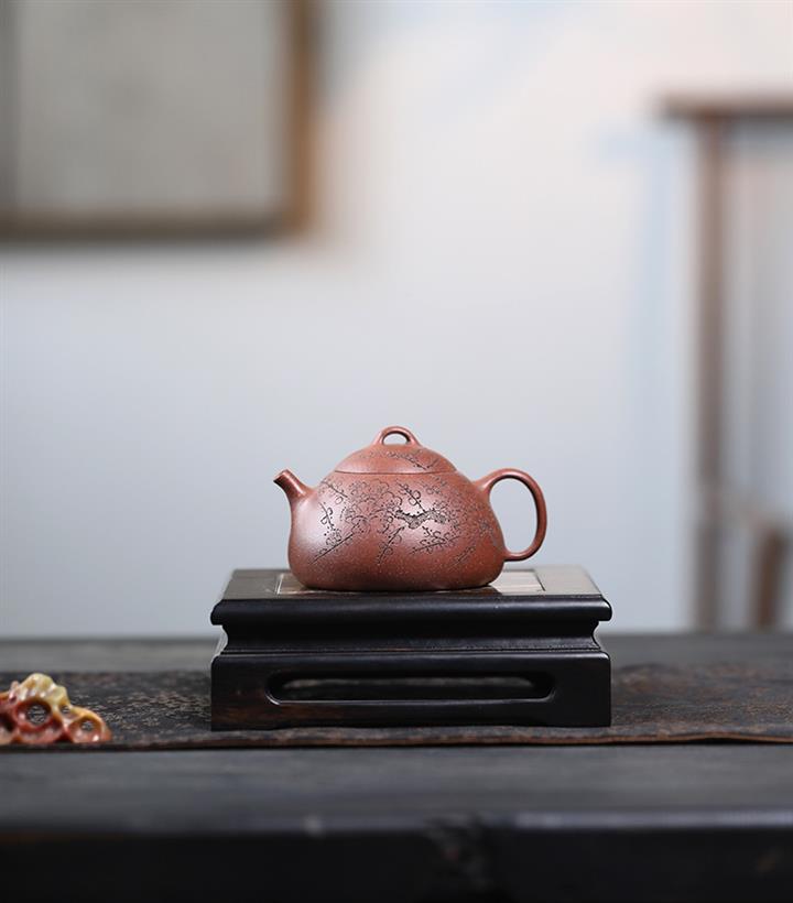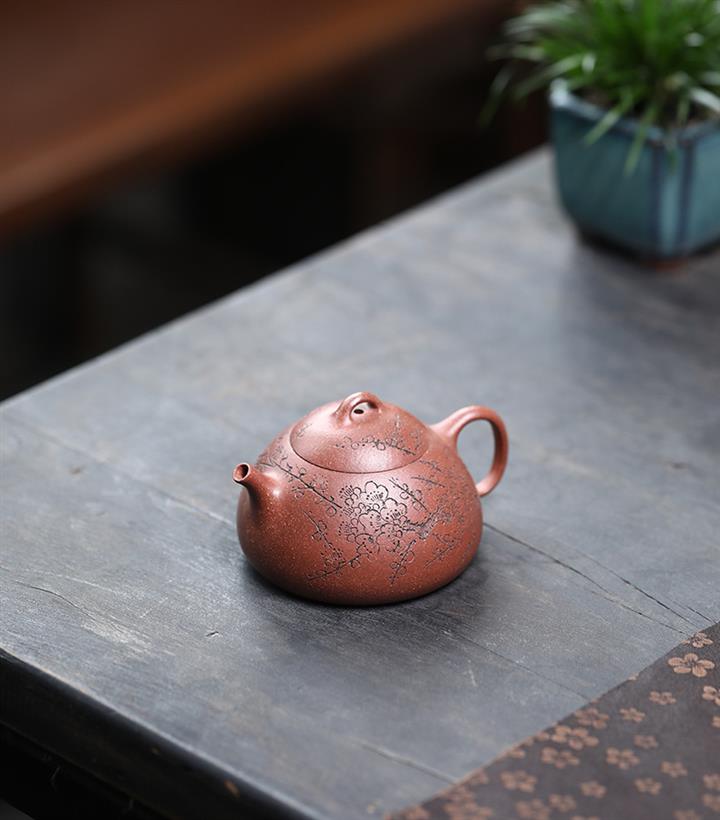 130cc原礦降坡泥暗香刻梅花茶壺POT8048
