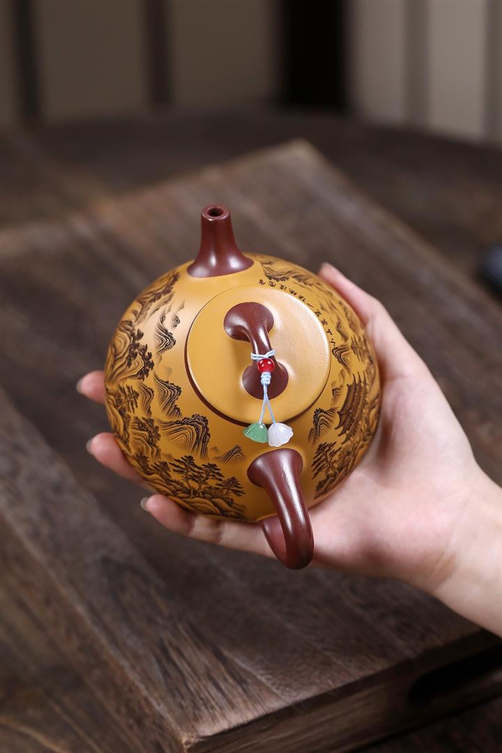 【作品介紹】此款壺形線條流暢,壺把,壺嘴,壺身壹氣呵成栩栩如生,是收藏把玩的好壺,泥料色澤古樸典雅,日久使用,漸露鋒芒,養成變化快,溫潤莊重,用其泡茶,使用的年代久,壺身就溫潤,泡出來的茶湯也就醇郁芳馨。